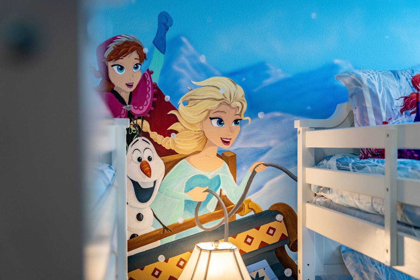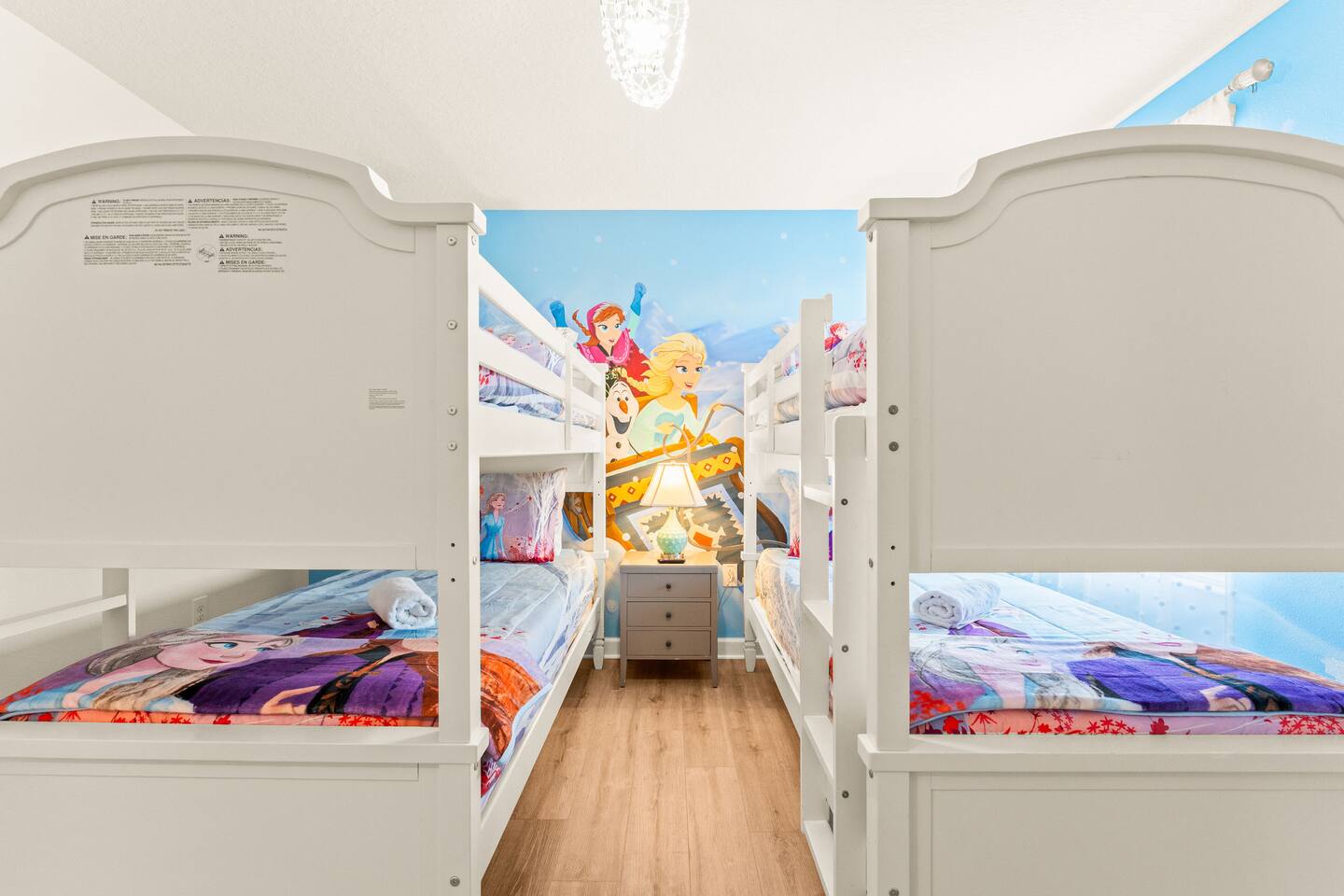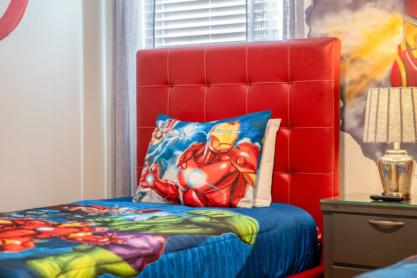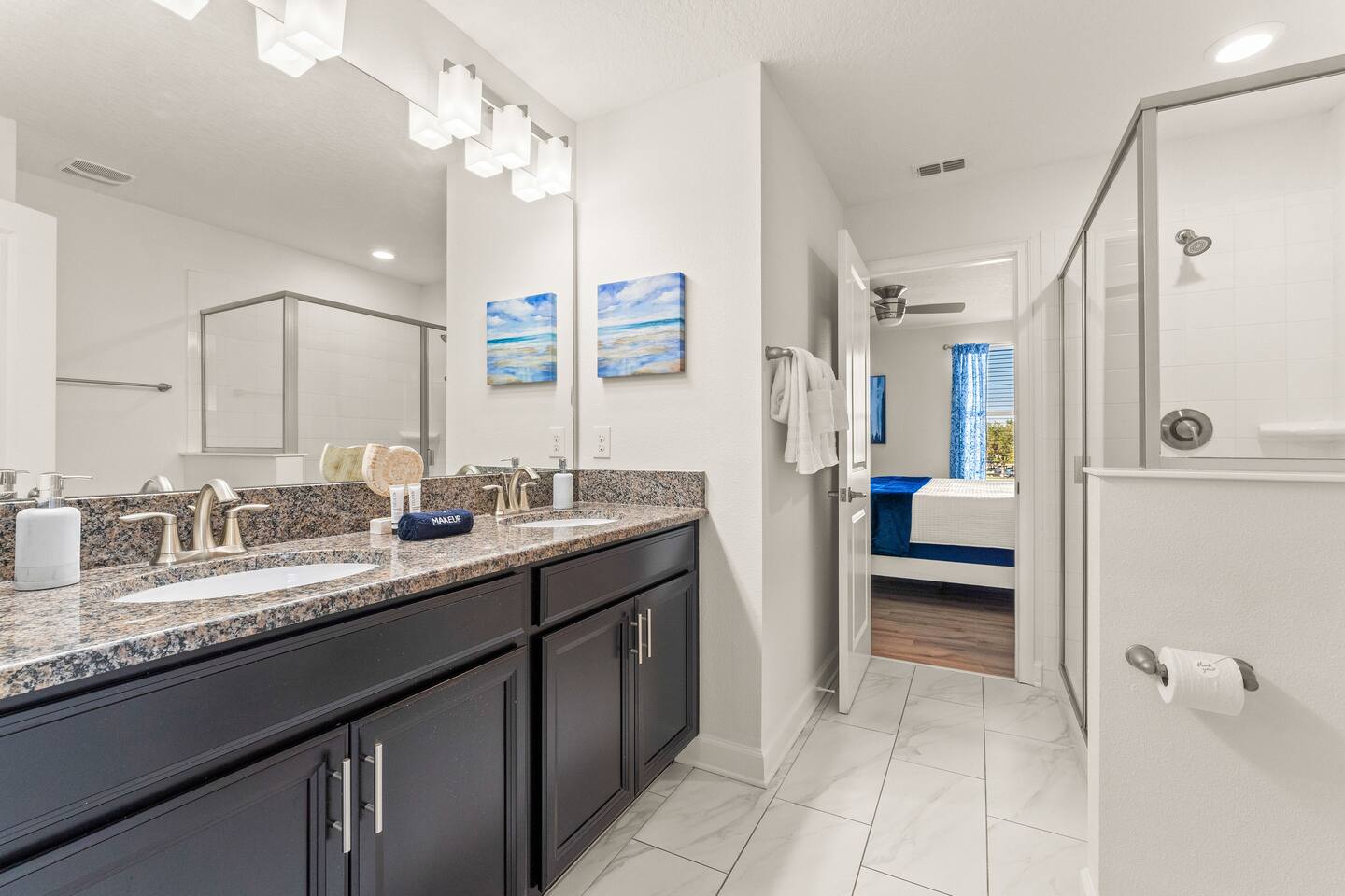 ✨ Prime Location • Approximately 8–12 miles to Walt Disney World Resort (about 15–20 minutes) • Minutes to Universal Studios, SeaWorld, and local dining, shopping & entertainment • Easy access to I-4, Orlando Airport ~30 miles away ☆☆ Bedrooms & Bathrooms ☆☆ This spacious villa comfortably sleeps 18 with 8 bedrooms and 5 full bathrooms. ★ Main Floor Masters ★ Perfect for guests who prefer single-story accommodations: Bedroom 1: Bright, coastal-inspired décor, king-sized bed, wall-mounted Smart TV, and private ensuite bathroom Bedroom 2: Vibrant room with bold orange accents, rustic wood-framed king bed, wall-mounted Smart TV, private ensuite bathroom, and direct access to the pool deck. ★ Second Floor Bedrooms ★ Six additional rooms offering flexibility for families and themed fun: Bedroom 3: Beach-inspired, king-sized bed, arched headboard, soft blue accents, coastal décor, wood flooring. Bedroom 4: Marvel-themed, two twin beds, superhero murals, character bedding, shares a Jack-and-Jill bathroom with Bedroom 5. Bedroom 5: Frozen-themed, two twin-over-twin bunk beds (sleeps 4), vibrant wall murals, character bedding. Bedroom 6: King-sized bed with white statement headboard, plush bedding, sea turtle-themed pillows, deep blue velvet throw, patterned curtains. Bedroom 7: Elegant bedroom with classic black wood arched king bed, spacious and comfortable. Bedroom 8: Bright coastal-themed, king-sized bed, studded headboard, soft blue and white tones with turquoise accents, dual windows, wood flooring. All bedrooms feature comfortable beds, ample storage, and flat-screen TVs. Bathrooms are stocked with plush towels and travel-size essentials. ☆☆ Gourmet Kitchen & Living Spaces ☆☆ The fully equipped kitchen features stainless steel appliances, granite countertops, and everything you need to prepare meals for large groups, from breakfast before the parks to family dinners at night. • Kitchen island seating + formal dining area • Open-concept layout flows into the main living room with a large smart TV! ☆☆ ENTERTAINMENT for All Ages ☆☆ • Converted garage game room featuring air hockey, foosball, two gaming stations with Xbox and PlayStation, pedestal gaming chairs, and bold Transformers-themed wall murals. • Upstairs, you’ll find a game loft with a pool table, cozy seating and TV — a great shared space between the bedrooms for family hangouts and friendly competition. • Plenty of spaces to relax, play games, watch movies, or simply unwind after a full day at the parks. ☆☆ OUTSIDE SPACE ☆☆ Step outside to your private screened-in lanai, featuring: • Heated private pool and spa with safety fencing • Sun loungers, outdoor seating, and dining area, perfect for grilling and relaxing under Florida skies. • A safe and fun outdoor space for kids and adults alike. • Pool heat set at 80 degrees (May–Sept) and 83 degrees (Oct – April) is included in your reservation, higher temperature can be provided for an additional cost. ★☆☆ ChampionsGate Resort Amenities ☆☆★ As guests of this home, you’ll have access to ChampionsGate’s Oasis Clubhouse amenities just walking distance away: ☀ Resort-style pool with lazy river & water slides ☀ Splash pad & children’s play areas ☀ Fitness center ☀ Tiki bar, restaurant, cabanas ☀ Arcade, movie theater, sports courts & more ☀ 24-hour gated security