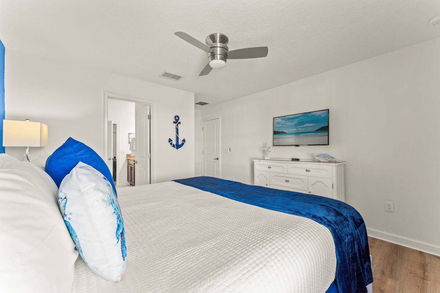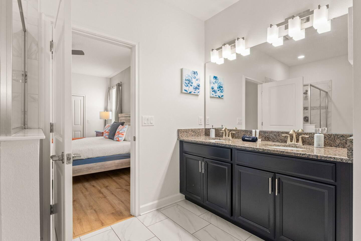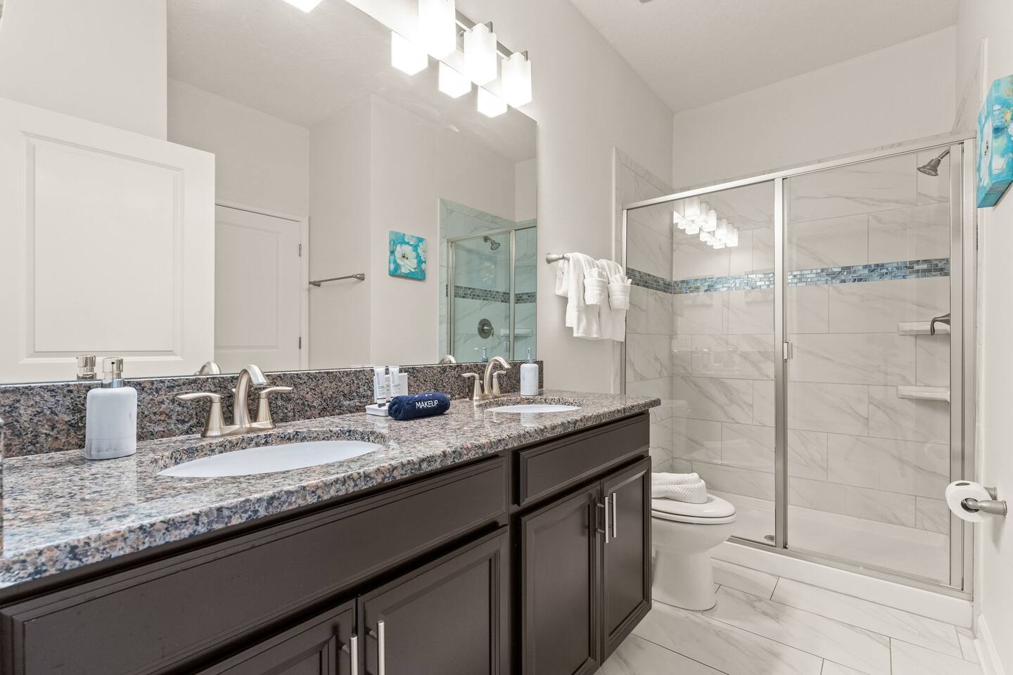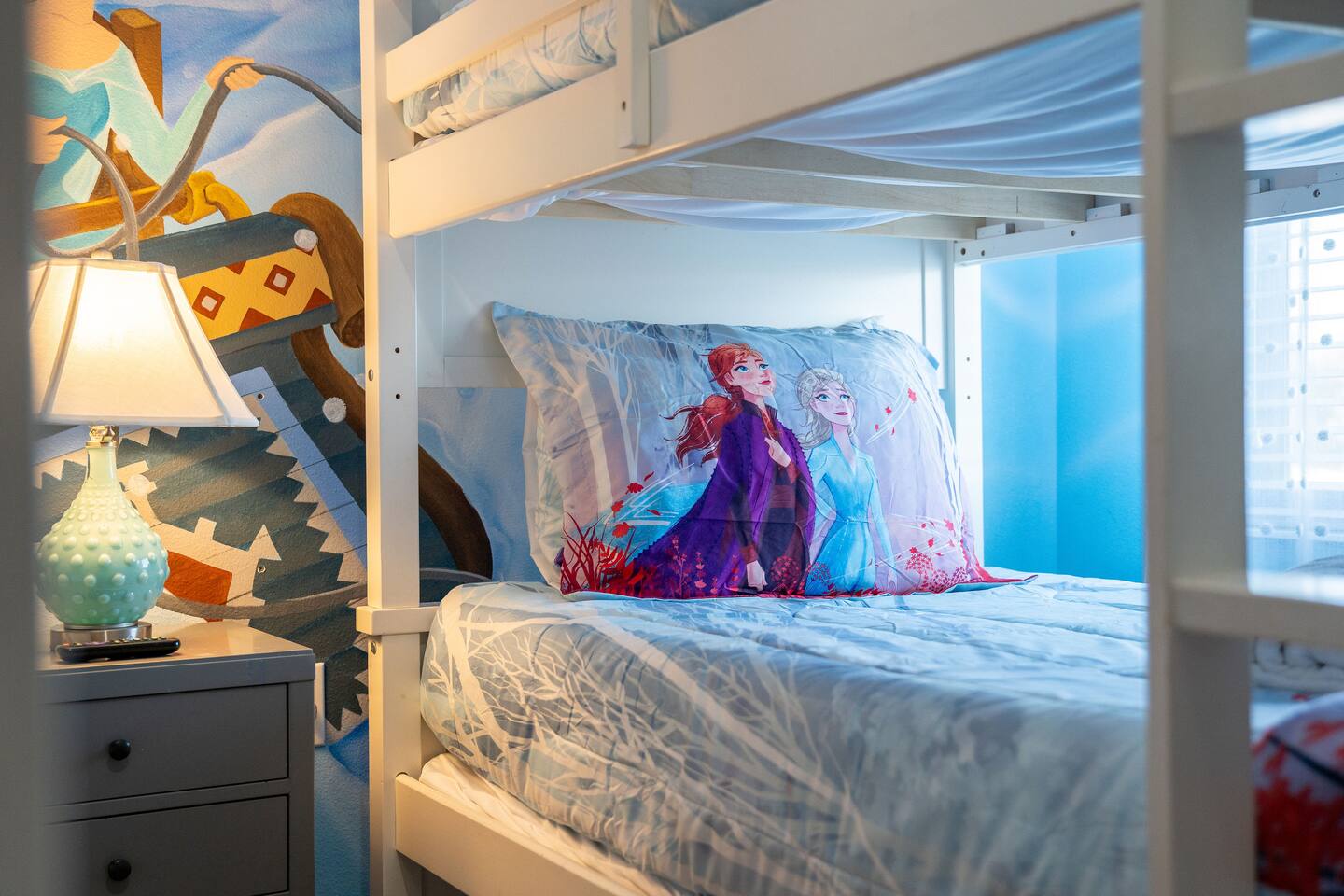 ✨ Prime Location • Approximately 8–12 miles to Walt Disney World Resort (about 15–20 minutes) • Minutes to Universal Studios, SeaWorld, and local dining, shopping & entertainment • Easy access to I-4, Orlando Airport ~30 miles away ☆☆ Bedrooms & Bathrooms ☆☆ This spacious villa comfortably sleeps 18 with 8 bedrooms and 5 full bathrooms. ★ Main Floor Masters ★ Perfect for guests who prefer single-story accommodations: Bedroom 1: Bright, coastal-inspired décor, king-sized bed, wall-mounted Smart TV, and private ensuite bathroom Bedroom 2: Vibrant room with bold orange accents, rustic wood-framed king bed, wall-mounted Smart TV, private ensuite bathroom, and direct access to the pool deck. ★ Second Floor Bedrooms ★ Six additional rooms offering flexibility for families and themed fun: Bedroom 3: Beach-inspired, king-sized bed, arched headboard, soft blue accents, coastal décor, wood flooring. Bedroom 4: Marvel-themed, two twin beds, superhero murals, character bedding, shares a Jack-and-Jill bathroom with Bedroom 5. Bedroom 5: Frozen-themed, two twin-over-twin bunk beds (sleeps 4), vibrant wall murals, character bedding. Bedroom 6: King-sized bed with white statement headboard, plush bedding, sea turtle-themed pillows, deep blue velvet throw, patterned curtains. Bedroom 7: Elegant bedroom with classic black wood arched king bed, spacious and comfortable. Bedroom 8: Bright coastal-themed, king-sized bed, studded headboard, soft blue and white tones with turquoise accents, dual windows, wood flooring. All bedrooms feature comfortable beds, ample storage, and flat-screen TVs. Bathrooms are stocked with plush towels and travel-size essentials. ☆☆ Gourmet Kitchen & Living Spaces ☆☆ The fully equipped kitchen features stainless steel appliances, granite countertops, and everything you need to prepare meals for large groups, from breakfast before the parks to family dinners at night. • Kitchen island seating + formal dining area • Open-concept layout flows into the main living room with a large smart TV! ☆☆ ENTERTAINMENT for All Ages ☆☆ • Converted garage game room featuring air hockey, foosball, two gaming stations with Xbox and PlayStation, pedestal gaming chairs, and bold Transformers-themed wall murals. • Upstairs, you’ll find a game loft with a pool table, cozy seating and TV — a great shared space between the bedrooms for family hangouts and friendly competition. • Plenty of spaces to relax, play games, watch movies, or simply unwind after a full day at the parks. ☆☆ OUTSIDE SPACE ☆☆ Step outside to your private screened-in lanai, featuring: • Heated private pool and spa with safety fencing • Sun loungers, outdoor seating, and dining area, perfect for grilling and relaxing under Florida skies. • A safe and fun outdoor space for kids and adults alike. • Pool heat set at 80 degrees (May–Sept) and 83 degrees (Oct – April) is included in your reservation, higher temperature can be provided for an additional cost. ★☆☆ ChampionsGate Resort Amenities ☆☆★ As guests of this home, you’ll have access to ChampionsGate’s Oasis Clubhouse amenities just walking distance away: ☀ Resort-style pool with lazy river & water slides ☀ Splash pad & children’s play areas ☀ Fitness center ☀ Tiki bar, restaurant, cabanas ☀ Arcade, movie theater, sports courts & more ☀ 24-hour gated security