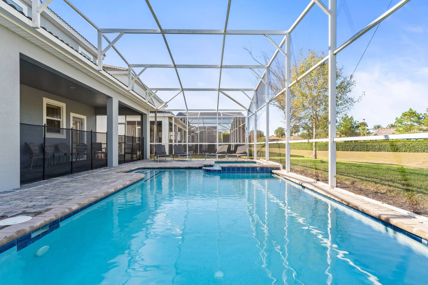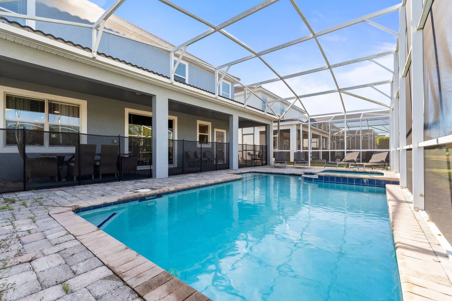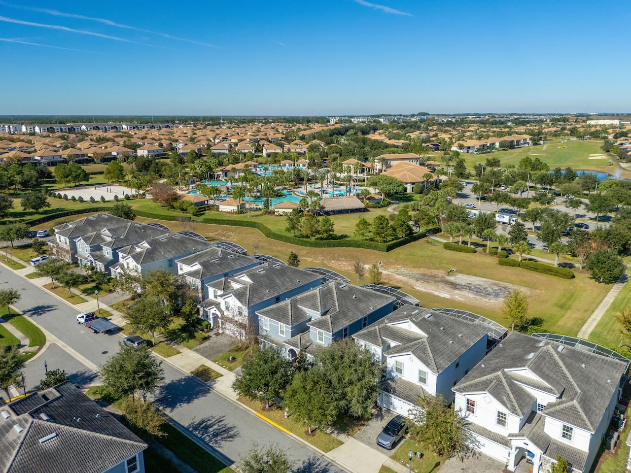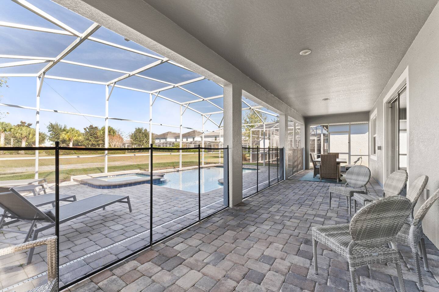 The home is located in a quiet residential neighborhood in Davenport, offering a relaxed and family-friendly atmosphere. It’s conveniently close to grocery stores, restaurants, and shopping plazas, while still providing a peaceful retreat after a day of exploring Central Florida. Major attractions such as Walt Disney World, ChampionsGate, and nearby golf courses are just a short drive away.