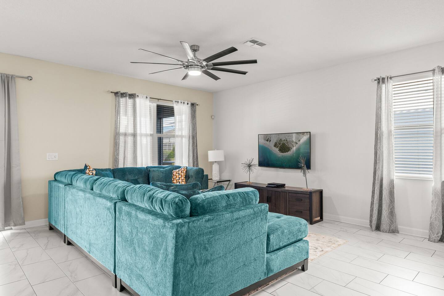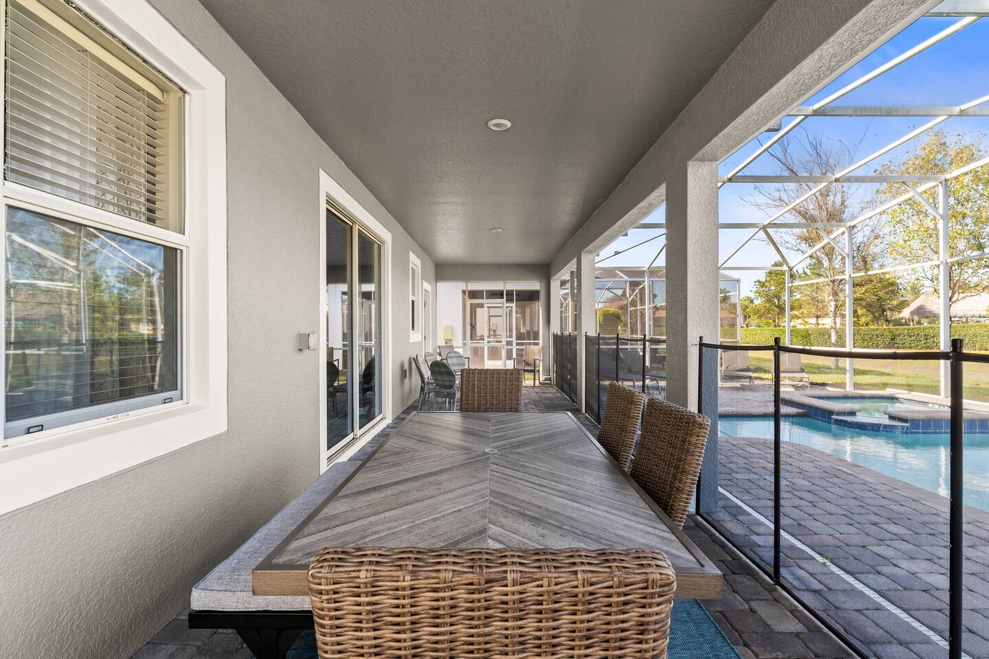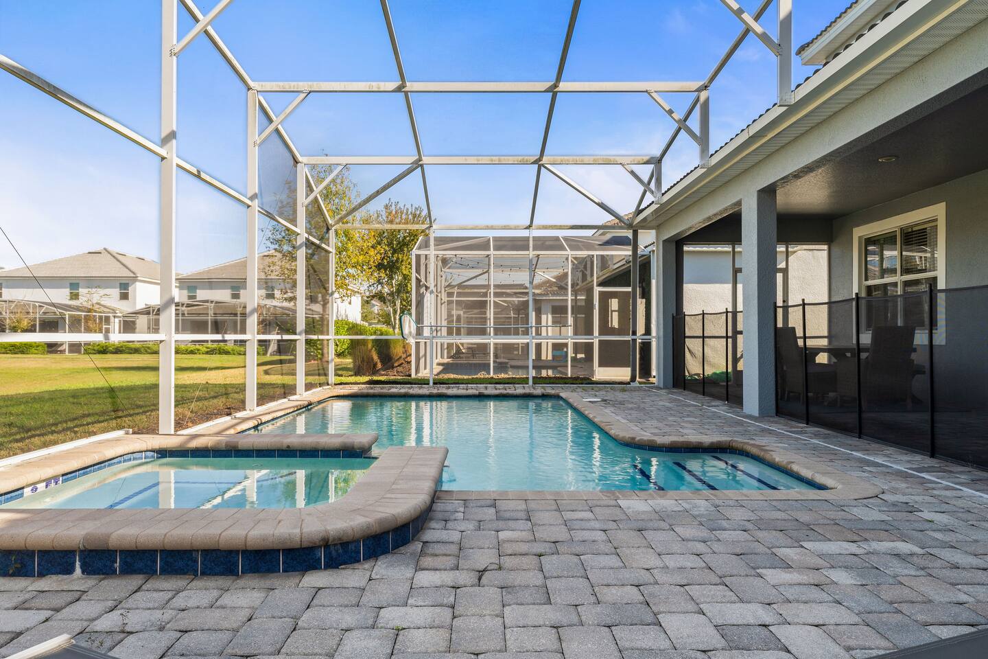 The home is located in a quiet residential neighborhood in Davenport, offering a relaxed and family-friendly atmosphere. It’s conveniently close to grocery stores, restaurants, and shopping plazas, while still providing a peaceful retreat after a day of exploring Central Florida. Major attractions such as Walt Disney World, ChampionsGate, and nearby golf courses are just a short drive away.