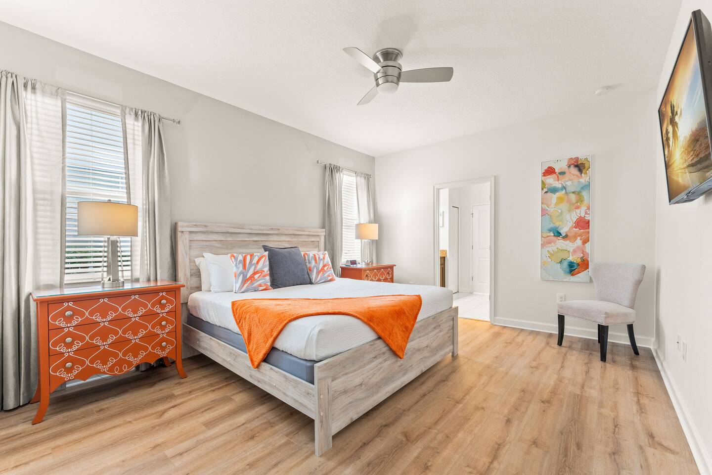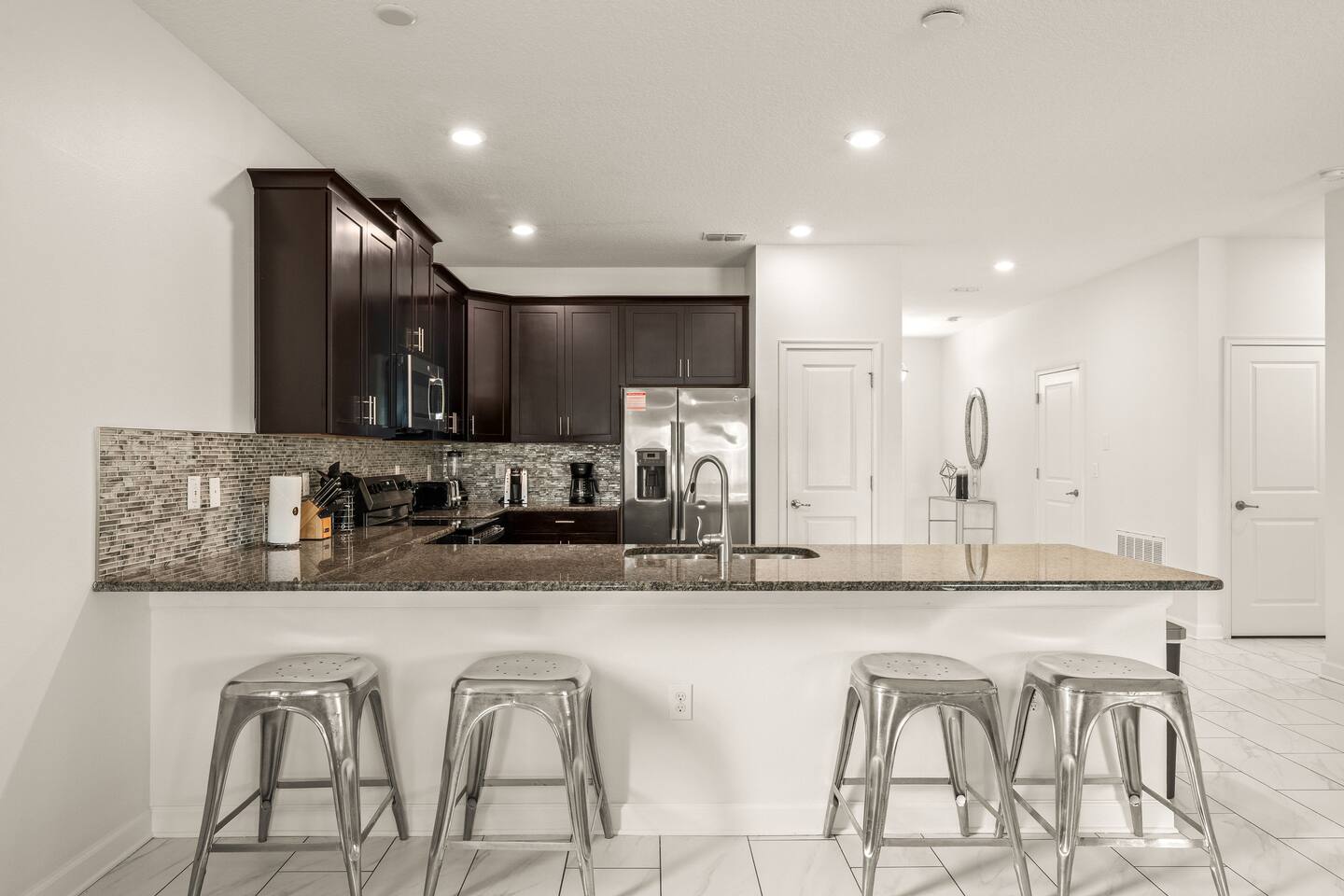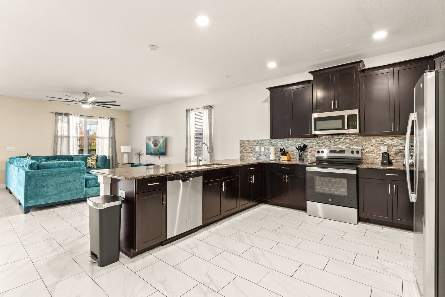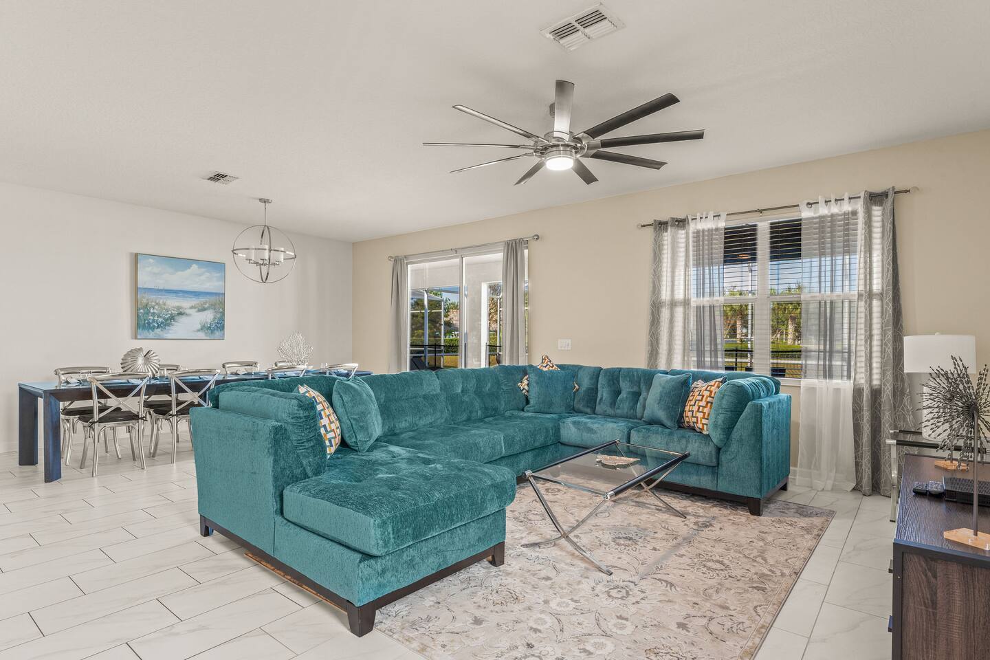 The home is located in a quiet residential neighborhood in Davenport, offering a relaxed and family-friendly atmosphere. It’s conveniently close to grocery stores, restaurants, and shopping plazas, while still providing a peaceful retreat after a day of exploring Central Florida. Major attractions such as Walt Disney World, ChampionsGate, and nearby golf courses are just a short drive away.