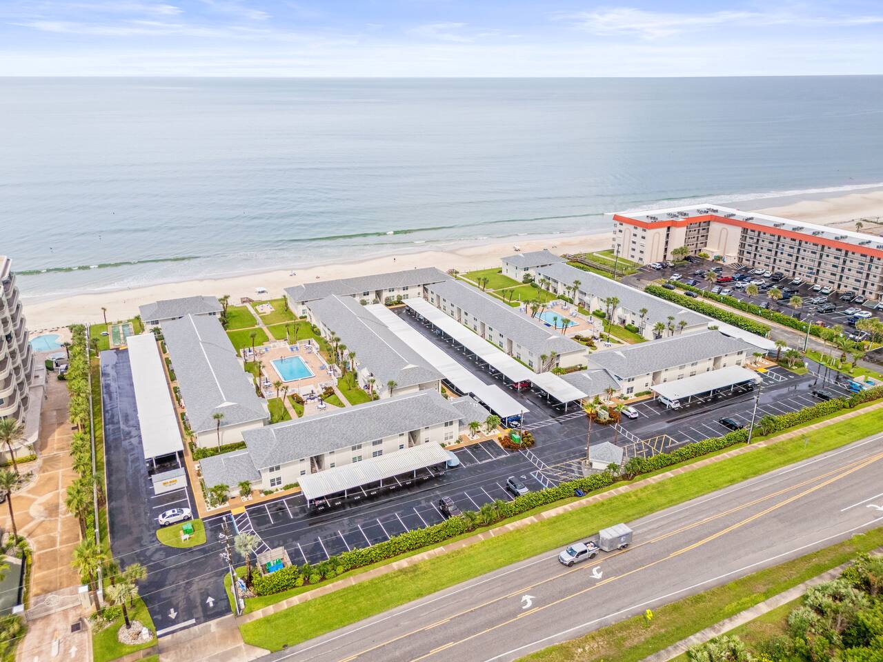 Experience the charm of The Colony Beach Club, perfectly situated just off South Atlantic Avenue and only 2 miles from lively Flagler Avenue. This serene oceanfront community offers two sparkling pools – including one heated year-round – along with private, direct access to New Smyrna’s beautiful no-drive beach. Guests also enjoy the convenience of a reserved covered parking space. Relax, unwind, and let your beachside getaway begin at The Colony Beach Club!