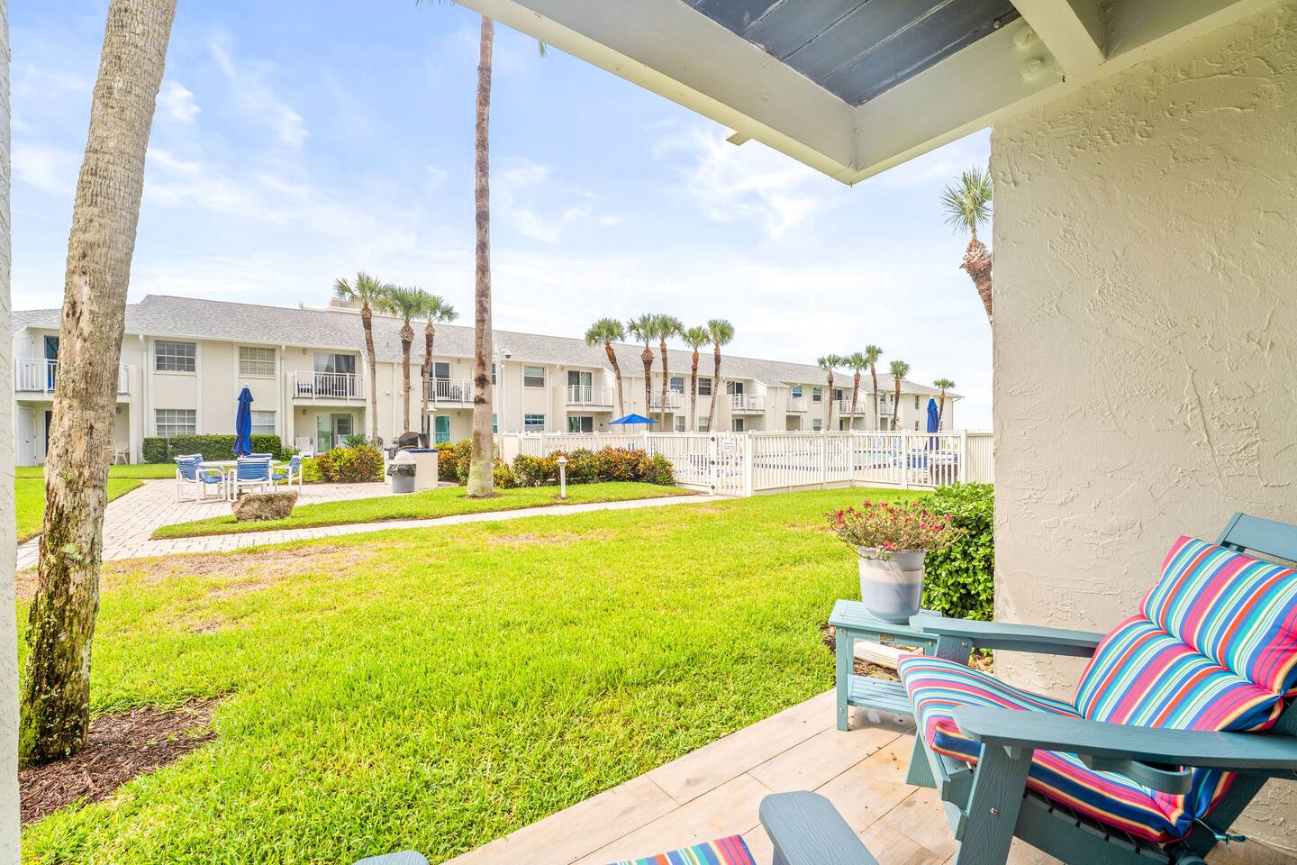 Step into a bright and inviting condo designed with your comfort in mind. The open layout, tasteful décor, and convenient amenities ensure a stress-free and memorable stay. Here’s what you can expect: ♦ Fully Equipped Kitchen – Cook up family meals or prepare beach snacks in the well-stocked kitchen, featuring modern appliances, cookware, dishes, and plenty of counter space. ♦ Ocean Views & Breezes – Start your mornings with the soothing sound of waves and enjoy fresh ocean air from your patio. ♦ Comfortable Accommodations – This home features a spacious bedroom and cozy living area, thoughtfully furnished to create a restful environment. ♦ Resort-Style Amenities – Take advantage of the heated pool, BBQ area, and direct beach access. We’ve also included beach chairs, umbrellas, and towels for your convenience. ♦ Stay Connected – High-speed Wi-Fi, Smart TV, and air conditioning ensure both comfort and entertainment throughout your stay. ♦ Activities All Around – Spend your days sunbathing, surfing, or swimming just steps from your door. For more adventure, explore Flagler Avenue’s boutique shops and restaurants, visit local art galleries, or book a fishing trip for a taste of Florida’s coastal life.