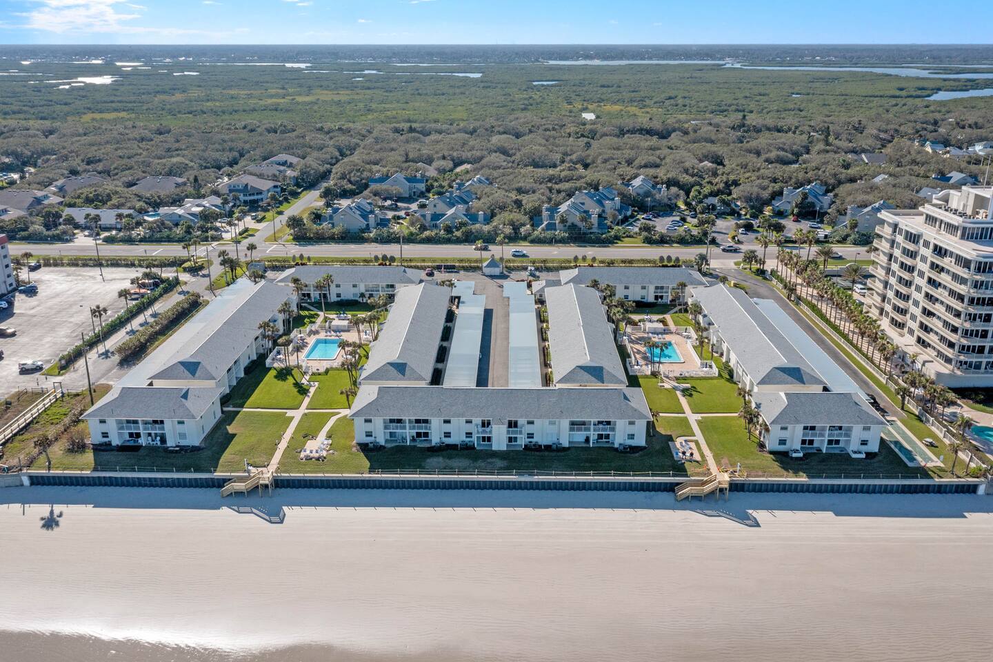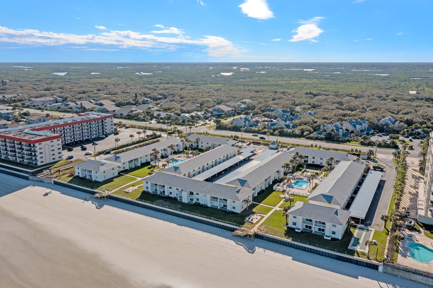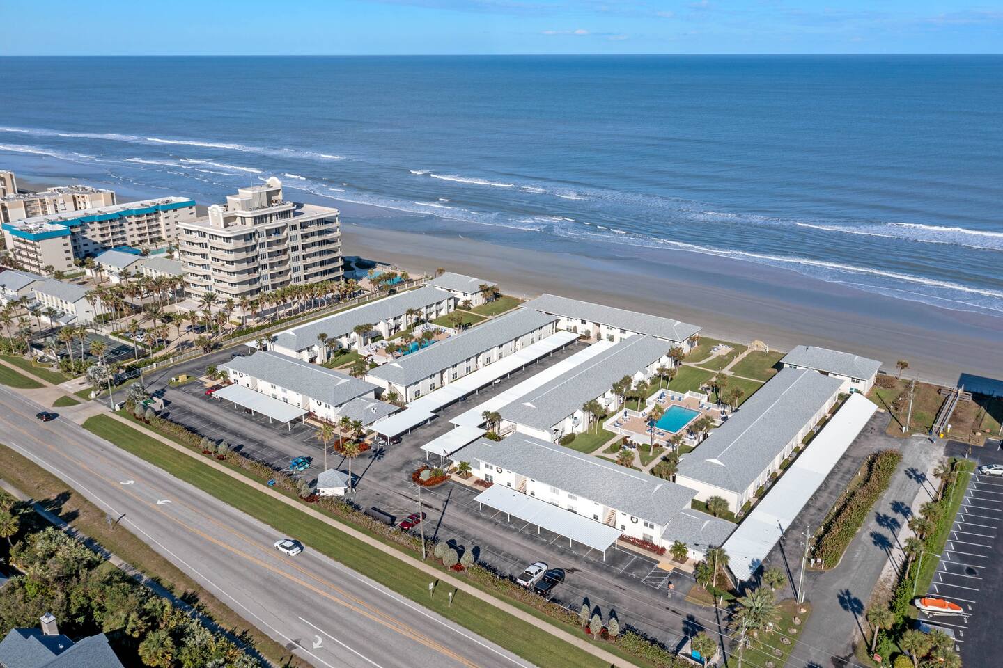 Discover The Colony Beach Club, conveniently located just off South Atlantic Avenue, only 2 miles from Flagler Ave. Immerse yourself in the tranquility of this inviting complex, featuring two pools – one heated throughout the year. Enjoy direct access to the stunning "NO-DRIVE" beach in New Smyrna. Every guest can also enjoy the convenience of a designated parking space in a carport. Your peaceful beach escape begins here at The Colony Beach Club!
