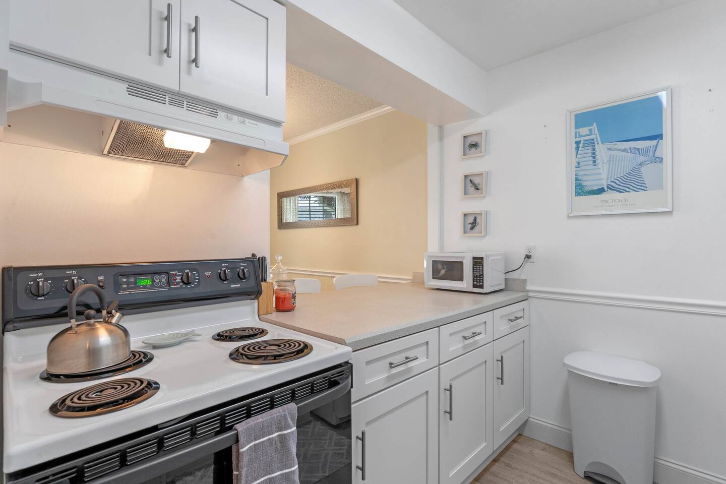 Our cozy beachfront condo sleeps 4 people comfortably and is freshly updated with new floors and new furniture. Features: 1BR/1BA - 1 Queen Bed / 1 Queen Pull out Couch High Speed Wi-Fi Balcony Heated Pool Beachfront Shuffle Board Keyless entry Ocean & Pool view Bedroom: 1 bedroom with Queen Size bed Fully Equipped Kitchen: Refrigerator, freezer, microwave, electric stove, oven, coffee maker, toaster Cooking basics: pepper, oil, salt, pans, pots, etc. Dishes and silverware Dining: Table seats 4 people Family Amenities & Entertainment Main living room has a SMART TV with standard cable TV in Bedroom Folding or convertible high chair - available upon request Pack ’n play / travel crib - available upon request Outdoor Living Space: Outdoor dining area Private Balcony Beach Essentials Sun loungers Heated Pool Community BBQ grill Amazing ocean view, steps from the beach