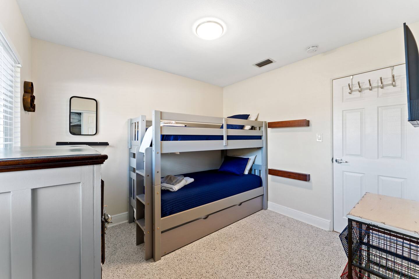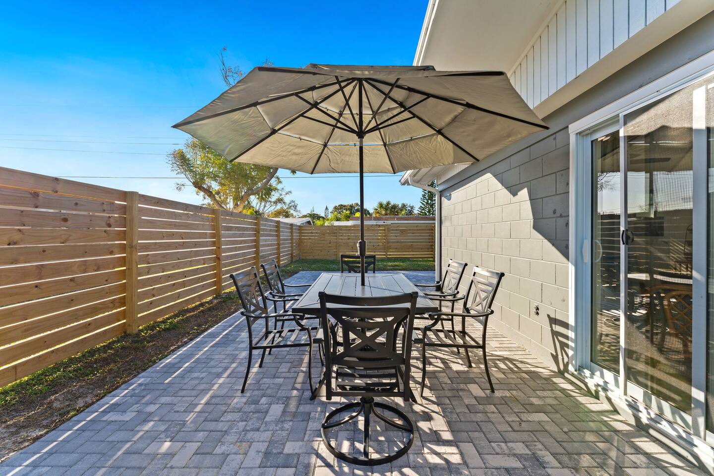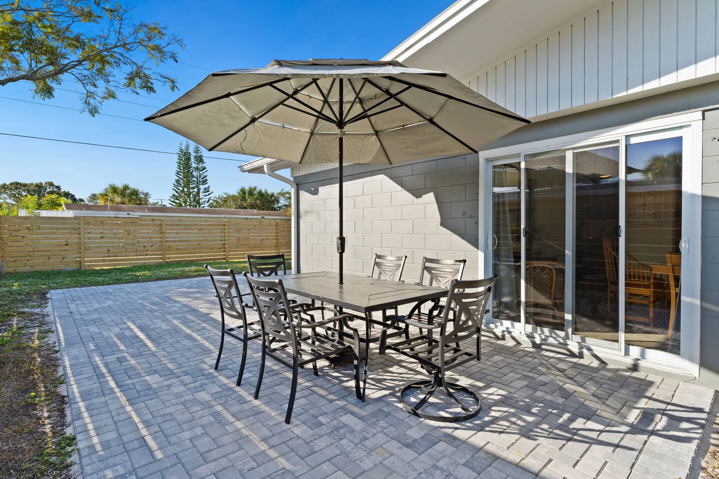 KEY FEATURES: ☀ 3 bedrooms – GREAT DESIGN! ☀ 1 suite ☀ SUPER FAST high-speed internet ☀ Fully equipped kitchen; stainless steel appliances + large dining area ☀ Private patio; FREE private hot tub ☀ Fully accessible first floor ☀ Free secured parking ☀ Quiet community ☀ Onsite washer + dryer ☀ Complimentary children’s amenities; Pack n’ Play, stroller, high chair + more (**Must be requested 14 days prior to arrival**) ☆☆ BEDROOMS + BATHROOMS ☆☆ Guests of all ages are guaranteed to find the perfect bedroom in this spacious home. The suite offers a queen-size bed. The second bedroom offers a cozy double bed. The third bedroom offers a bunk bed for the perfect sleepover set up for our younger guests. All bathrooms are stocked with travel-sized soap, shampoo, conditioner, and plush towels. Please remember to stop at the supermarket to buy any other supplies you may need for your stay. ☆☆ KITCHEN ☆☆ Get ready to impress the chef in your group with our fully equipped kitchen at your disposal. With stainless steel appliances, ample counter space, and all the essentials, whipping up tasty meals for the whole family will be a breeze. For coffee lovers, we’ve also included a coffee maker to start your day off right. When it’s time to gather for a meal, choose from three different dining options. Cozy up to the kitchen island (seating four), eat as a group at the formal dining table (seating six), or enjoy alfresco dining at the outdoor table (seating six). ☆☆ OUTSIDE SPACE ☆☆ Step outside onto the private patio and enjoy the lush surroundings. The patio is the perfect place to hang out after a long day at the beach. This cozy area features a private hot tub, an outdoor shower and a spacious backyard, perfect for your kiddos to play and have fun in! ★☆ Book Today & Let Us Take Care Of You On Florida’s Coast! ☆★