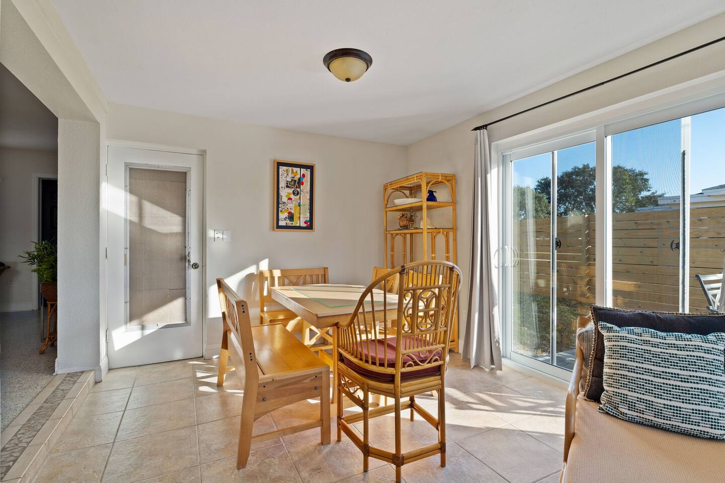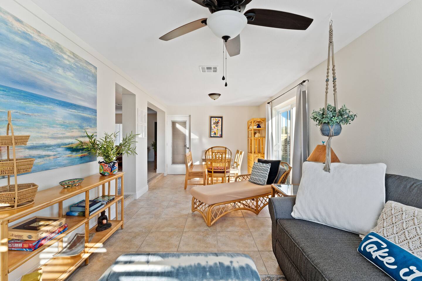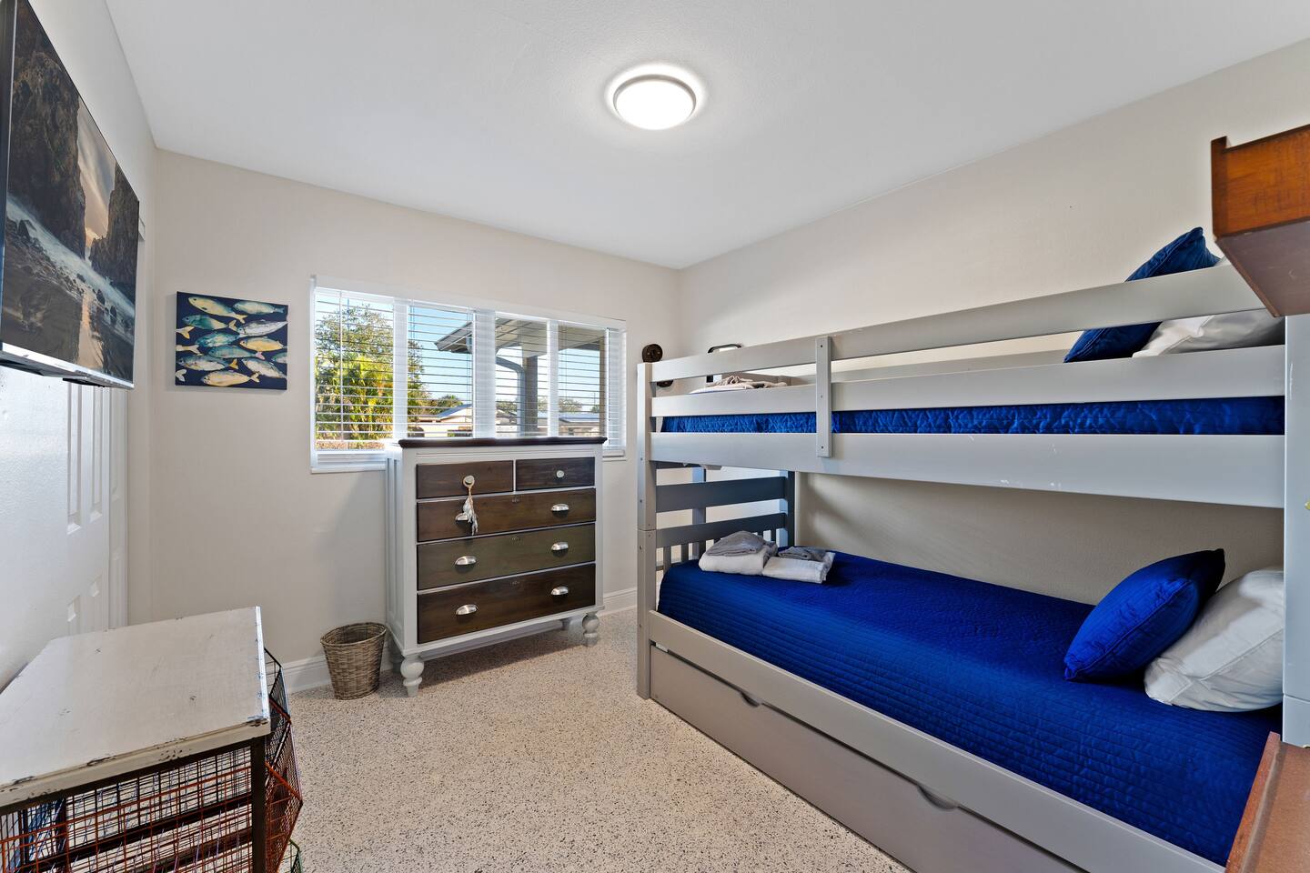 KEY FEATURES: ☀ 3 bedrooms – GREAT DESIGN! ☀ 1 suite ☀ SUPER FAST high-speed internet ☀ Fully equipped kitchen; stainless steel appliances + large dining area ☀ Private patio; FREE private hot tub ☀ Fully accessible first floor ☀ Free secured parking ☀ Quiet community ☀ Onsite washer + dryer ☀ Complimentary children’s amenities; Pack n’ Play, stroller, high chair + more (**Must be requested 14 days prior to arrival**) ☆☆ BEDROOMS + BATHROOMS ☆☆ Guests of all ages are guaranteed to find the perfect bedroom in this spacious home. The suite offers a queen-size bed. The second bedroom offers a cozy double bed. The third bedroom offers a bunk bed for the perfect sleepover set up for our younger guests. All bathrooms are stocked with travel-sized soap, shampoo, conditioner, and plush towels. Please remember to stop at the supermarket to buy any other supplies you may need for your stay. ☆☆ KITCHEN ☆☆ Get ready to impress the chef in your group with our fully equipped kitchen at your disposal. With stainless steel appliances, ample counter space, and all the essentials, whipping up tasty meals for the whole family will be a breeze. For coffee lovers, we’ve also included a coffee maker to start your day off right. When it’s time to gather for a meal, choose from three different dining options. Cozy up to the kitchen island (seating four), eat as a group at the formal dining table (seating six), or enjoy alfresco dining at the outdoor table (seating six). ☆☆ OUTSIDE SPACE ☆☆ Step outside onto the private patio and enjoy the lush surroundings. The patio is the perfect place to hang out after a long day at the beach. This cozy area features a private hot tub, an outdoor shower and a spacious backyard, perfect for your kiddos to play and have fun in! ★☆ Book Today & Let Us Take Care Of You On Florida’s Coast! ☆★