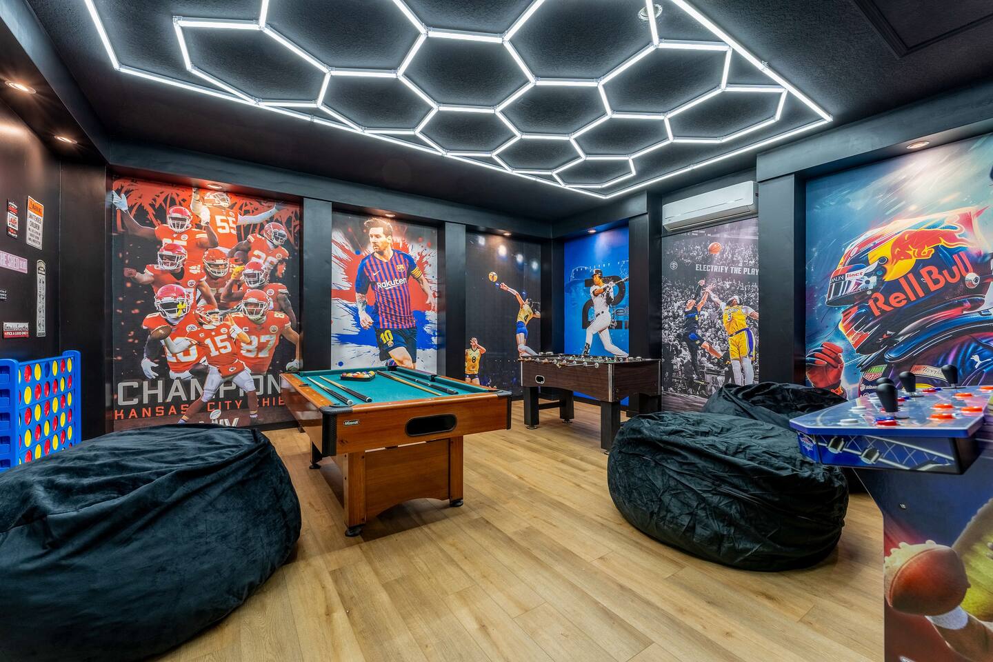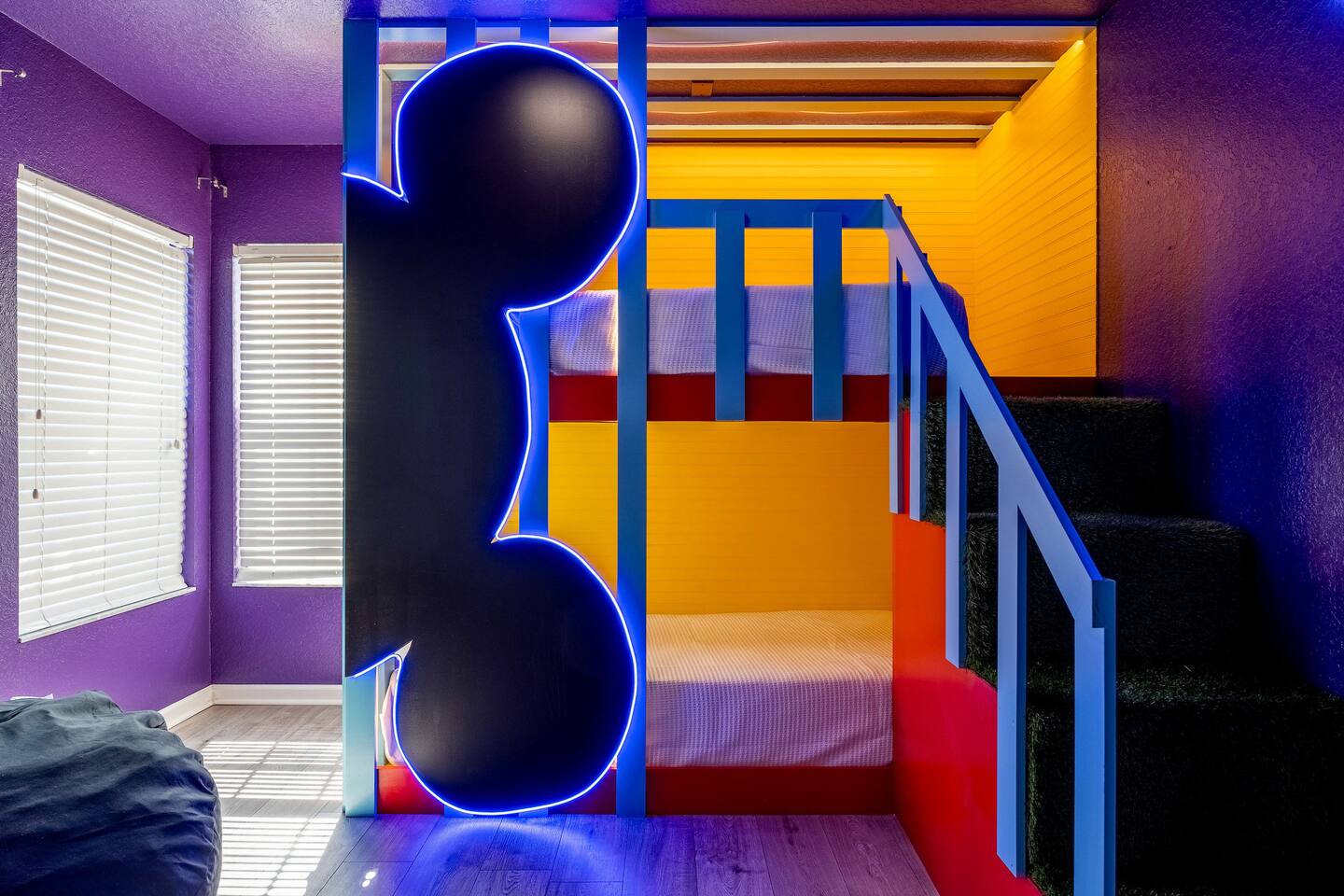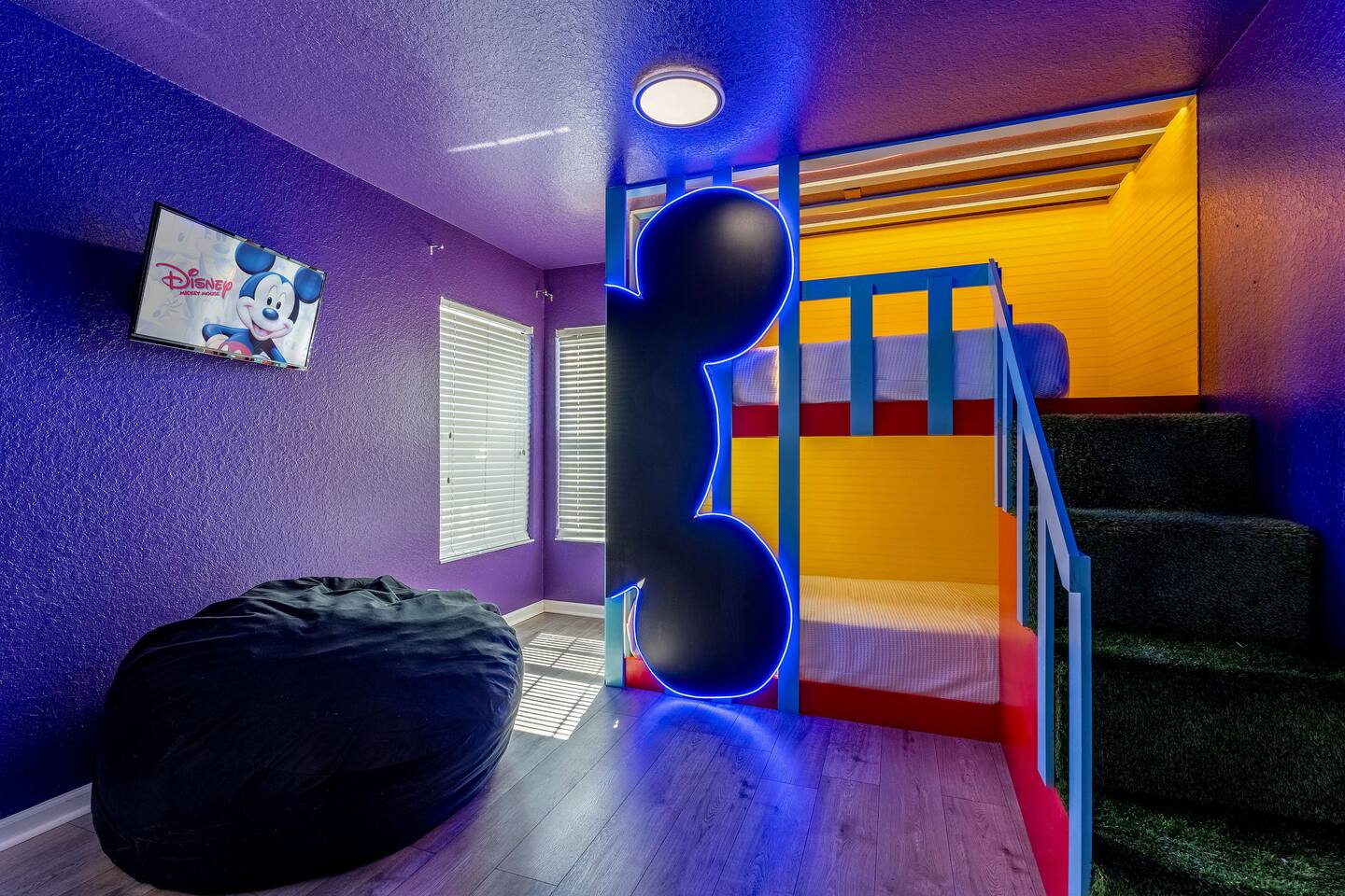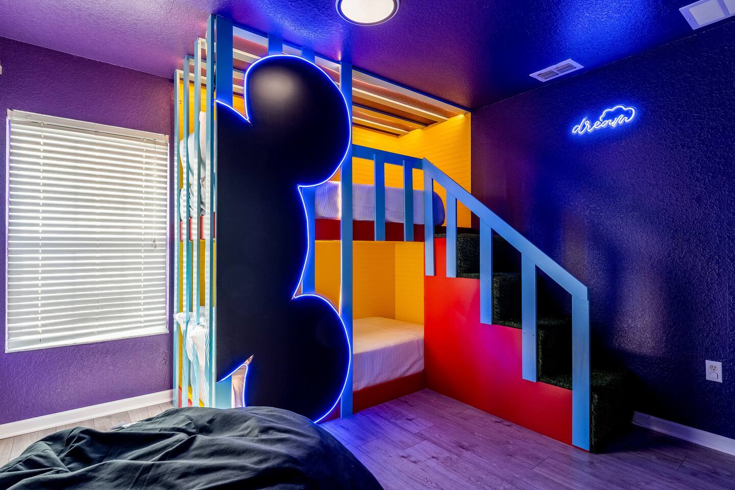 KEY FEATURES: ☀ 6 bedrooms – Themed Luxury Design! ☀ 2 suites on the first floor ☀ SUPER FAST high-speed internet ☀ Large family room; flat-screen smart TVs ☀ Private patio; POOL + Spa with FREE pool HEAT (80°) ☀ Fully equipped kitchen; large dining area ☀ Fully accessible first floor ☀ Onsite washer + dryer ☀ Luxury gated community; Windsor Hills ☀ Complimentary children’s amenities; Pack n’ Play, highchair + more (Must be requested 14 days prior to arrival) ☀ Full access to resort amenities; 140,000-gallon resort-style pool, water park, splash pad movie theater, arcade, fitness center, sports complex, market place + more ☆☆ BEDROOMS + BATHROOMS ☆☆ Guests of all ages are guaranteed to find the perfect bedroom in this spacious home. There are three bedrooms on the first floor, all are wheelchair accessible. The other 3 bedrooms are on the second floor. The first main-level bedroom features a king-sized bed and a flat-screen SMART TV. This bedroom has an attached ensuite bathroom. The second main-level bedroom features a queen bed and a flat-screen SMART TV. The third first-level bedroom features a queen-size bed, flat-screen SMART TV, ensuite bathroom. All bathrooms are stocked with toilet paper, travel-sized soap, shampoo, conditioner, and plush towels. Please remember to stop at the supermarket to buy any other supplies you may need for your stay. ☆☆ KITCHEN ☆☆ • Fully-Equipped Kitchen: • Updated appliances • Essential cooking utensils, blender, griddle + more • Ample counter space • Coffee & Tea Station: • Drip coffee maker • Keurig coffee maker • Electric Tea Kettle • Dining Options: • Formal dining table seating for 8 - ISLAND SEATING for 4 • Outdoor dining table seating for 4 • Kitchen Starter Pack: paper towel, sponge, dish detergent ☆☆ LIVING ROOM ☆☆ Step into our inviting living room, a perfect blend of comfort and entertainment. It features a large Smart TV for your viewing pleasure, a plush and comfortable couch for relaxation. ☆☆ GARAGE / GAMEROOM ☆☆ The garage has been converted into a movie theater/ game room that the whole family is sure to love. Enjoy a vacation tournament of billiards or arcade games. ☆☆ OUTSIDE SPACE ☆☆ Step outside onto the private patio and enjoy the lush surroundings. The screened-in patio is the perfect place to hang out after a long day at the parks. This luxurious area features a private pool and hot tub with a safety net for the kiddos and sun loungers for everyone to enjoy. Enjoy a night swim with our color-changing pool light! Pool heat set at 80 degrees (May–Sept) and 83 degrees (Oct – April) is included in your reservation, higher temperature can be provided for an additional cost. ☆☆Please Don’t Leave Pets Unattended: To ensure your pet’s safety and avoid any accidental damage, we kindly ask that pets are not left alone in the home or yard at any time during your stay. If you need help finding local pet care options, we’re happy to assist! ★☆ Book Today & Let Us Take Care of You in Central Florida! ☆★