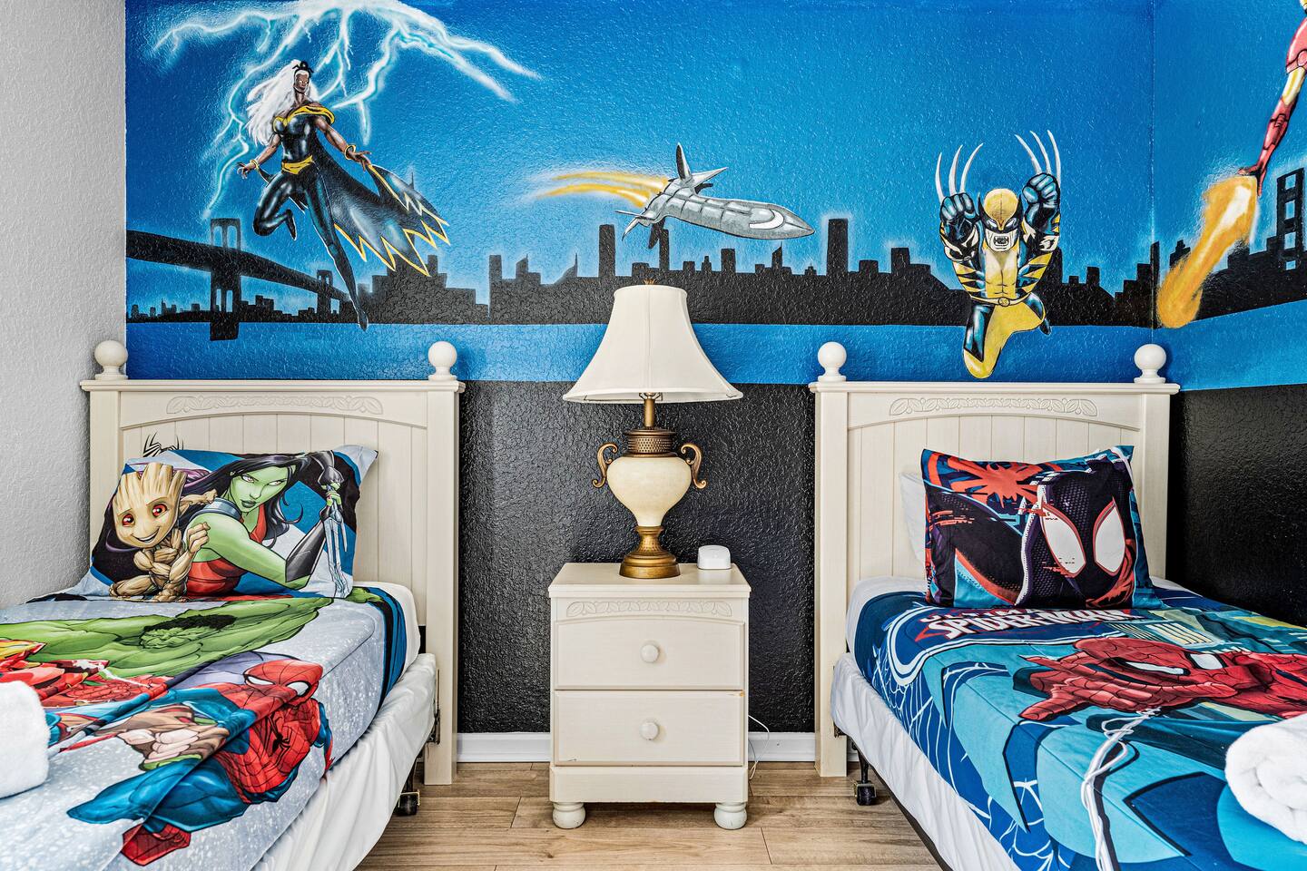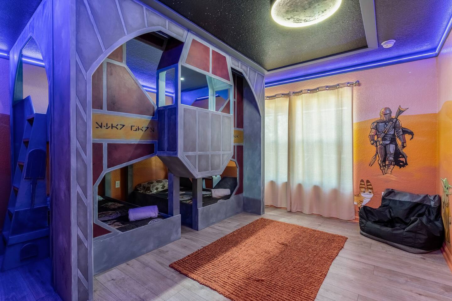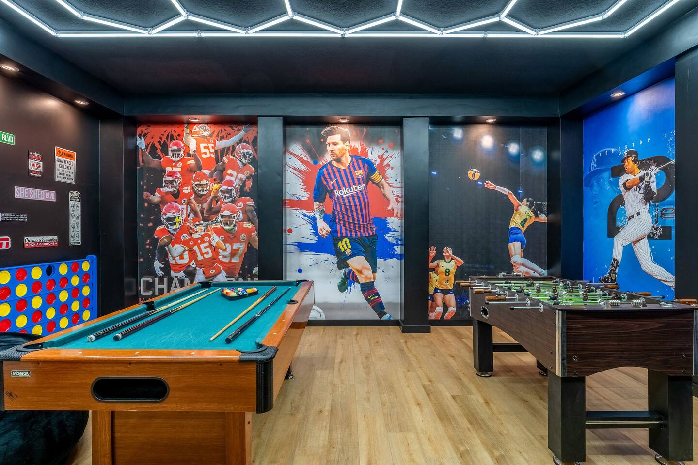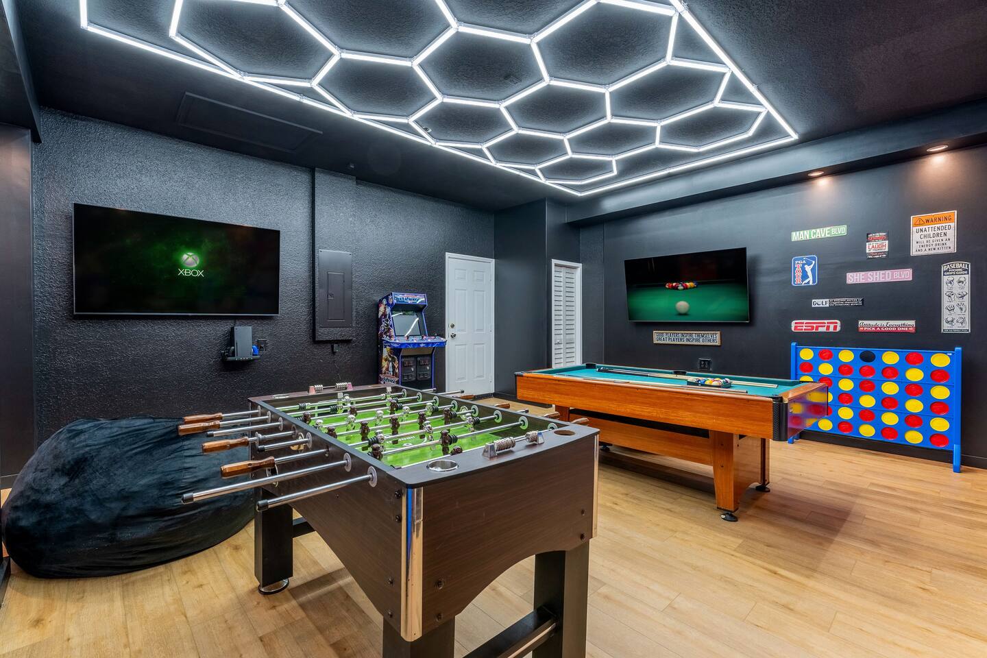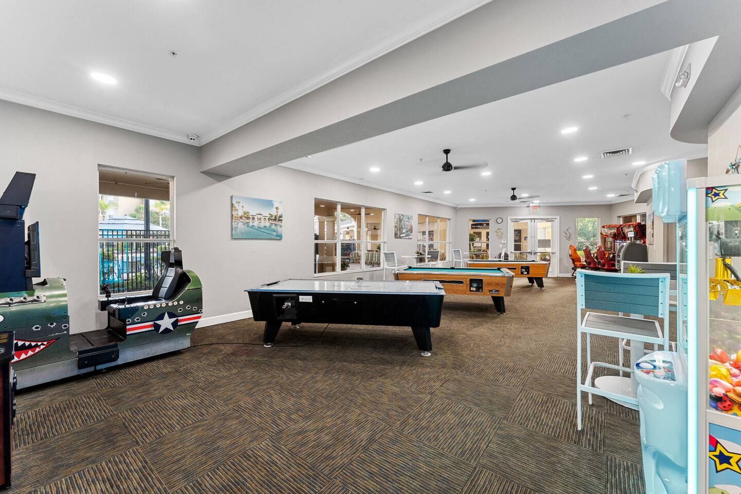 KEY FEATURES: ☀ 6 bedrooms – Themed Luxury Design! ☀ 2 suites on the first floor ☀ SUPER FAST high-speed internet ☀ Large family room; flat-screen smart TVs ☀ Private patio; POOL + Spa with FREE pool HEAT (80°) ☀ Fully equipped kitchen; large dining area ☀ Fully accessible first floor ☀ Onsite washer + dryer ☀ Luxury gated community; Windsor Hills ☀ Complimentary children’s amenities; Pack n’ Play, highchair + more (Must be requested 14 days prior to arrival) ☀ Full access to resort amenities; 140,000-gallon resort-style pool, water park, splash pad movie theater, arcade, fitness center, sports complex, market place + more ☆☆ BEDROOMS + BATHROOMS ☆☆ Guests of all ages are guaranteed to find the perfect bedroom in this spacious home. There are three bedrooms on the first floor, all are wheelchair accessible. The other 3 bedrooms are on the second floor. The first main-level bedroom features a king-sized bed and a flat-screen SMART TV. This bedroom has an attached ensuite bathroom. The second main-level bedroom features a queen bed and a flat-screen SMART TV. The third first-level bedroom features a queen-size bed, flat-screen SMART TV, ensuite bathroom. All bathrooms are stocked with toilet paper, travel-sized soap, shampoo, conditioner, and plush towels. Please remember to stop at the supermarket to buy any other supplies you may need for your stay. ☆☆ KITCHEN ☆☆ • Fully-Equipped Kitchen: • Updated appliances • Essential cooking utensils, blender, griddle + more • Ample counter space • Coffee & Tea Station: • Drip coffee maker • Keurig coffee maker • Electric Tea Kettle • Dining Options: • Formal dining table seating for 8 - ISLAND SEATING for 4 • Outdoor dining table seating for 4 • Kitchen Starter Pack: paper towel, sponge, dish detergent ☆☆ LIVING ROOM ☆☆ Step into our inviting living room, a perfect blend of comfort and entertainment. It features a large Smart TV for your viewing pleasure, a plush and comfortable couch for relaxation. ☆☆ GARAGE / GAMEROOM ☆☆ The garage has been converted into a movie theater/ game room that the whole family is sure to love. Enjoy a vacation tournament of billiards or arcade games. ☆☆ OUTSIDE SPACE ☆☆ Step outside onto the private patio and enjoy the lush surroundings. The screened-in patio is the perfect place to hang out after a long day at the parks. This luxurious area features a private pool and hot tub with a safety net for the kiddos and sun loungers for everyone to enjoy. Enjoy a night swim with our color-changing pool light! Pool heat set at 80 degrees (May–Sept) and 83 degrees (Oct – April) is included in your reservation, higher temperature can be provided for an additional cost. ☆☆Please Don’t Leave Pets Unattended: To ensure your pet’s safety and avoid any accidental damage, we kindly ask that pets are not left alone in the home or yard at any time during your stay. If you need help finding local pet care options, we’re happy to assist! ★☆ Book Today & Let Us Take Care of You in Central Florida! ☆★