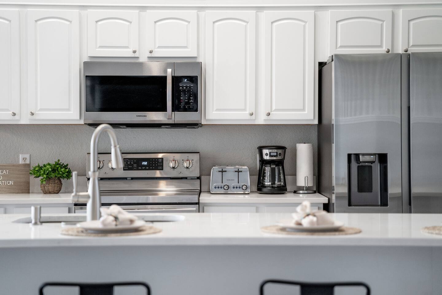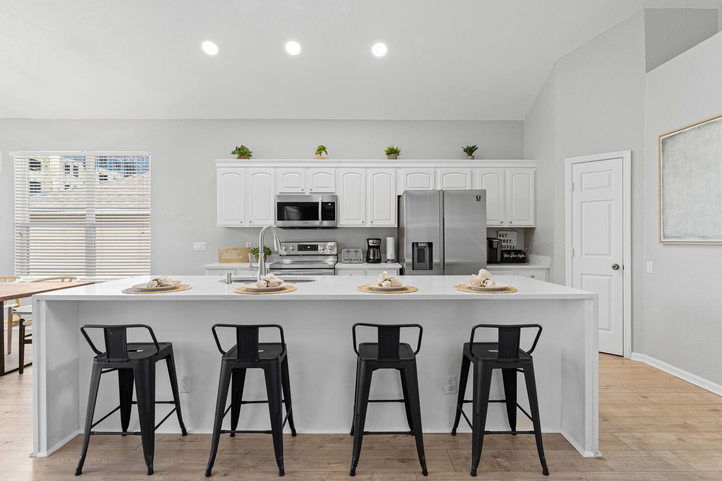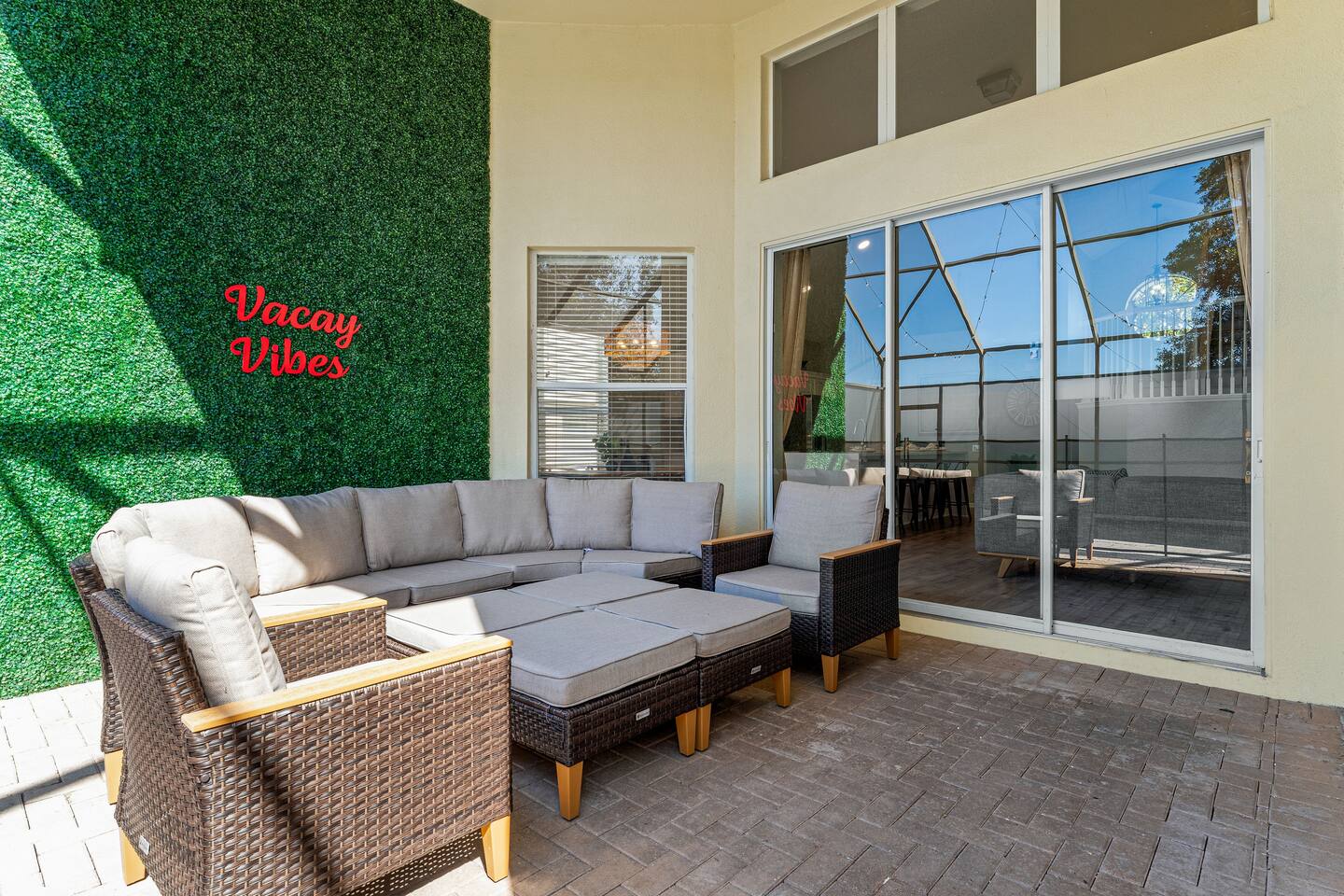 Guests will have full access to the whole home. Free parking is available onsite for two vehicles in the driveway. A maximum of 3 cars are allowed in the community. For those traveling with little ones, we offer Pack n’ Plays, a highchair, and a tension stair gate, at no additional cost. **All items must be requested 14 days prior to your arrival. Just so you know, a baseline set of Pool Heat - set to 80 degrees in the summer (May-Sep), and 83 degrees in the winter (Sep-Apr) is included in your reservation. The Heat Pump Runs from (8 AM – 7 PM). During the winter, to constantly maintain a more moderate pool temperature, it requires a higher temperature (typically 88 degrees) and the pump is usually required to run 24 HRS a day during your stay. If this sounds like a better option for you, we can provide this service at an additional cost of $35 / Day. Please let our team know at least 48 HRS in advance, as it can take that amount of time to heat the pool with cooler outdoor temperatures. We provide a small starter pack with basics like: ☀ 1 Paper Towel ☀ 1 Dish Sponge ☀ 1 Dish Detergent ☀ 2 Extra Trash Bags ☀ 2 Toilet Paper Roll Per Bath ☀ 2 to 3 Dishwashing Capsules in The Kitchen ☀ Small soap and small shampoo/conditioner per bathroom Please stop by the nearest Supermarket to gather any additional items you may need for the duration of your stay. The kitchen is well stocked with amenities we enjoy for large groups: ☀ Ample Serving Bowls ☀ Keurig Coffee Maker ☀ Basic baking ware ☀ Dishes & utensils for a crowd ☀ Pots & Pans to include a large Stock Pot ☀ Blender & Pitchers for serving Margaritas ☀ Microwave ☀ Oven ☀ Toaster ☀ Dishwasher HOUSEKEEPING: There is no daily housekeeping service provided at the rental rate. Before check-in, the unit will be thoroughly cleaned and inspected by a professional cleaning company. Clean sheets and towels will be available in the unit. Mid-stay cleaning services during your stay can be requested for an additional fee. GRILL 🔥: Enjoy the grill during your stay! Most homes in the area charge extra, but we include it for you! Guests are kindly asked to provide their own propane for the grill. Occasionally, previous guests may leave some behind, so you may be able to use it, but as a general rule, guests should plan to bring or swap propane at a local exchange station. FOOD: As per Florida law, we are not allowed to leave open food in the refrigerators or kitchen closets, hence, all food items will be removed after the guest checks out, and no supply of items such as condiments will be provided prior to check-in. Other things to note: Check-in is at 4:00 pm and check-out is at 10:00 am. We do offer either early check-in or late check-out, or both! However, please note this option is only available if we don't have same-day check-in as we require enough time between reservations to clean the home to our professional standards. Please send the requests well in advance so that we can coordinate in advance with our cleaning crew. Early Check-In: $50 add-on (3:00 pm instead) $75 add-on (2:00 pm instead) Late Check-Out: $100 add-on (11:00 am instead) $150 add-on (12:00 pm instead) In accordance with local regulations and the requirements of our insurance provider, guests may be asked to sign a rental agreement prior to check-in. This agreement is intended to ensure transparency and provide protection for both parties. We do not accept bookings from guests rated below 4 stars. Guests with ratings between 4 and 4.5 stars will require approval from management. Please remember that you're staying in someone's home, not a hotel. Please treat the space with respect. If any problems arise, we will do our best to act immediately; however, please keep in mind there is no one living on site 24/7. If you have an issue with the home, please let us know so we can fix it immediately!