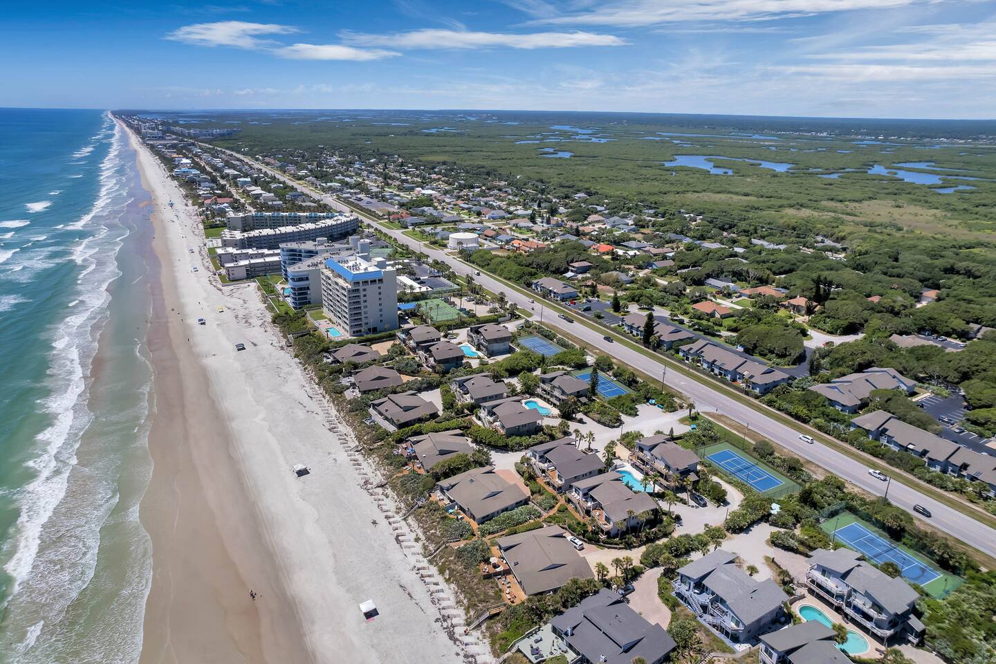 Turning off of South Atlantic Avenue, a short distance from the town of New Smyrna Beach, you'll enter the oasis you've been hoping to find. Tree-lined and canopied streets with natural vegetation and well-kept berms give our neighborhood that unique feeling of stepping onto a private resort. The beautiful Sea Woods community offers 3 pools, tennis courts, pickleball, and other facilities. Choose to stay on the walking paths and you may never want to leave. BUT...just a short walk away you'll find the natural beach area that is vast, beautiful, and peaceful.
