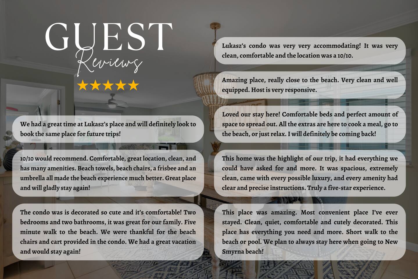 Guests will have full access to the condo. Free parking is available onsite for one vehicle. For those traveling with little ones, we offer Pack n’ Plays and a highchair at an additional cost. ***All items must be requested 14 days prior to your arrival We are an accessible property: ☀ Spacious bedrooms, living and common areas ☀ Private patio & outdoor dining area ☀ Public/shared beach access ☀ Access to all community amenities (heated pool, gym, pickleball & tennis court, and clubhouse) We provide a small starter pack with basics like: ☀ 1 Paper Towel ☀ 1 Dish Detergent ☀ 1 Dish Sponge ☀ 2 Extra Trash Bags ☀ 2 Toilet Paper Roll Per Bath ☀ 2 to 3 Dishwashing Capsules in The Kitchen ☀ Small soap and small shampoo/conditioner per bathroom Please stop by the nearest Supermarket to gather any additional items you may need for the duration of your stay. The kitchen is well stocked with amenities we enjoy for large groups: ☀ Ample Serving Bowls ☀ Basic baking ware ☀ Keurig Coffee Maker ☀ Dishes & utensils for a crowd ☀ Pots & Pans to include a large Stock Pot ☀ Blender & Pitchers for serving Margaritas ☀ Oven ☀ Toaster ☀ Dishwasher ☀ Microwave HOUSEKEEPING: There is no daily housekeeping service provided at the rental rate. Before check-in, the unit will be thoroughly cleaned and inspected by a professional cleaning company. Clean sheets and towels will be available in the unit. Mid-stay cleaning services during your stay can be requested for an additional fee. FOOD: As per Florida law, we are not allowed to leave open food in the refrigerators or kitchen closets, hence, all food items will be removed after the guest checks out, and no supply of items such as condiments will be provided prior to check-in. Other things to note Check-in is at 4:00 pm and check-out is at 10:00 am. We do offer either early check-in or late check-out, or both! However, please note this option is only available if we don't have same-day check-in as we require enough time between reservations to clean the home to our professional standards. Please send the requests well in advance so that we can coordinate in advance with our cleaning crew. Early Check-In: $50 add-on (3:00 pm instead) $75 add-on (2:00 pm instead) Late Check-Out: $100 add-on (11:00 am instead) $150 add-on (12:00 pm instead) In compliance with different local ordinances and our insurance provider, you might be asked to sign a rental agreement prior to check-in. This agreement ensures transparency and protects both parties. We do not accept bookings from guests rated below 4 stars. Guests with ratings between 4 and 4.5 stars will require approval from management. Please remember that you're staying in someone's home, not a hotel. Please treat the space with respect. If any problems arise, we will do our best to act immediately; however, please keep in mind there is no one living on site 24/7. If you have an issue with the home, please let us know so we can fix it immediately!