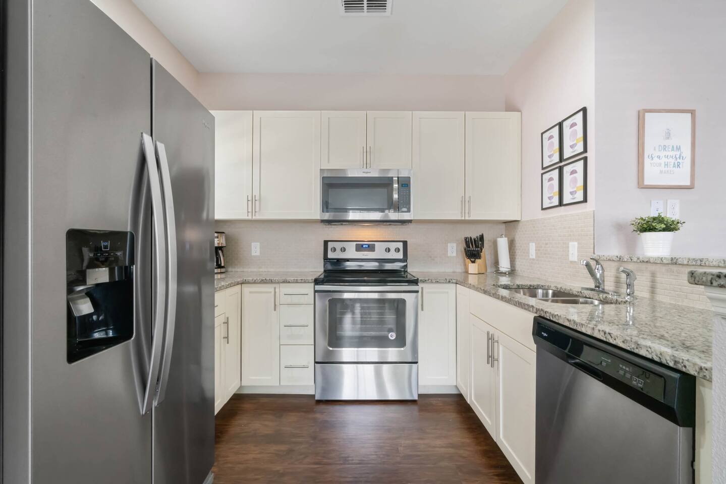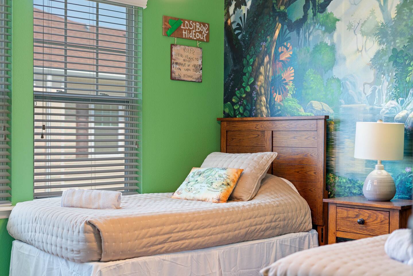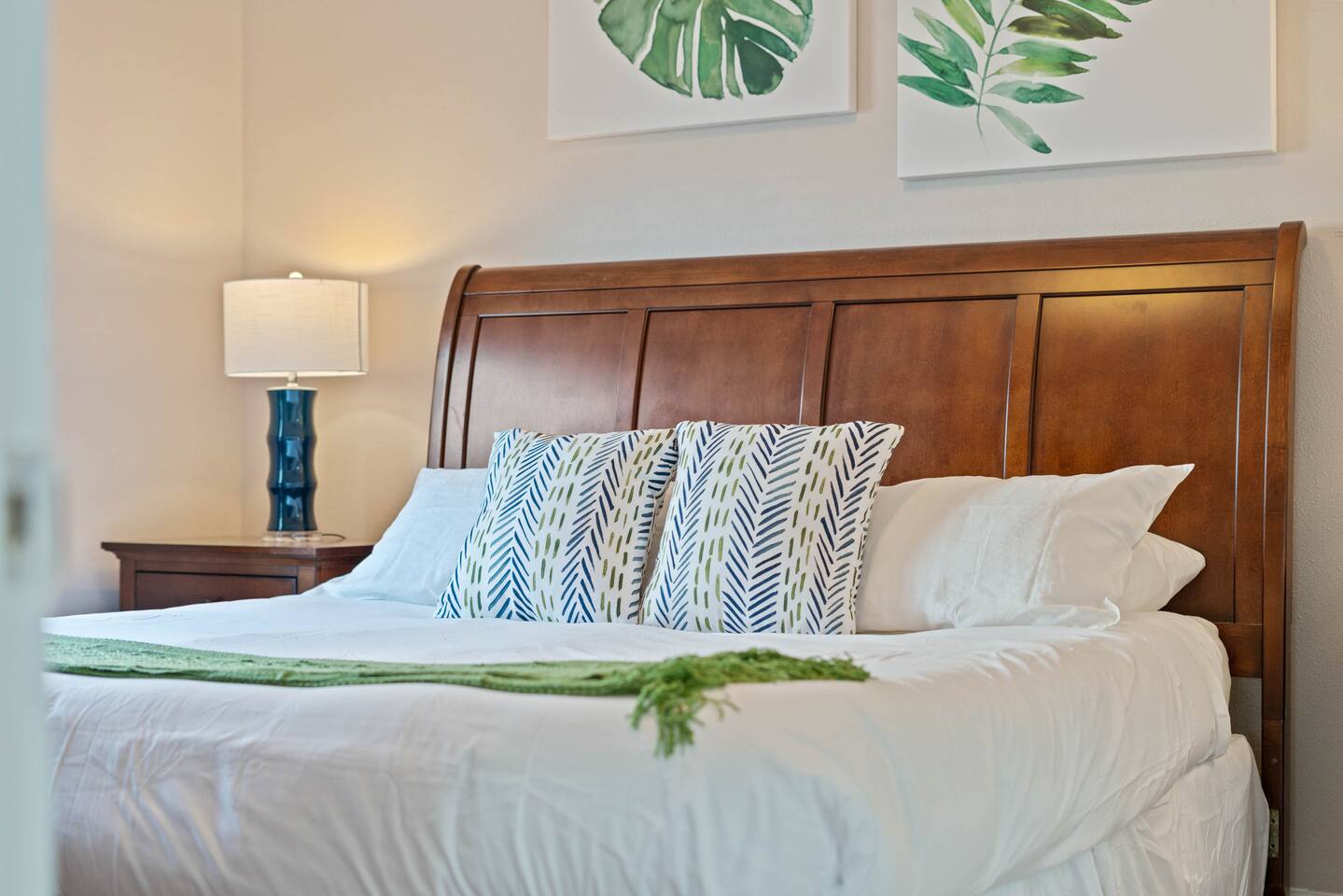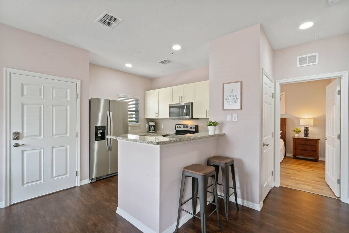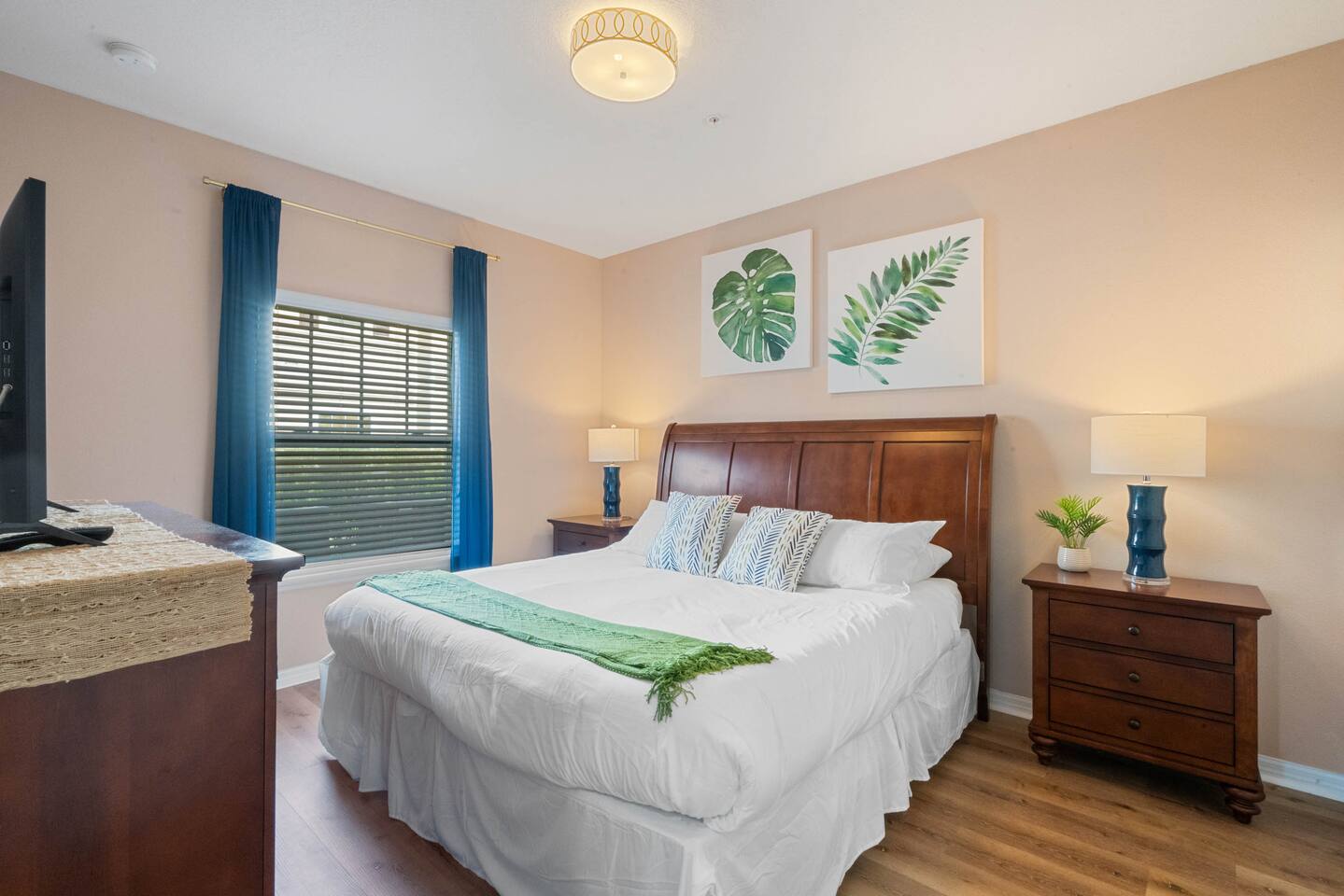 KEY FEATURES: ☀ 4 bedrooms – GREAT DESIGN! ☀ 1 suite ☀ SUPER FAST high-speed internet ☀ Fully equipped kitchen; stainless steel appliances + large dining area ☀ Free secured parking ☀ Quiet gated community ☀ Onsite washer + dryer ☀ Complimentary children’s amenities; Pack n’ Play, stroller, high chair + more (**Must be requested 14 days prior to arrival**) ☆☆ BEDROOMS + BATHROOMS ☆☆ Guests of all ages are guaranteed to find the perfect bedroom in this spacious home. The suite offers a king-sized bed and a private bathroom. The second bedroom also offers a king-sized bed. The other two bedrooms offer great themes for our young guests: a Tangled themed room with two single beds and an Aladdin themed room with two double beds! All bathrooms are stocked with travel-sized soap, shampoo, conditioner, and plush towels. Please remember to stop at the supermarket to buy any other supplies you may need for your stay. ☆☆ KITCHEN ☆☆ Get ready to impress the chef in your group with our fully equipped kitchen at your disposal. With stainless steel appliances, ample counter space, and all the essentials, whipping up tasty meals for the whole family will be a breeze. For coffee lovers, we’ve also included a coffee maker to start your day off right. ☆☆ COMMUNITY AMENITIES ☆☆ This cozy community features a pool with sun loungers for everyone to enjoy, a clubhouse and a game-room just a few minutes away from your doorstep! ★☆ Book Today & Let Us Take Care Of You In Central Florida! ☆★
