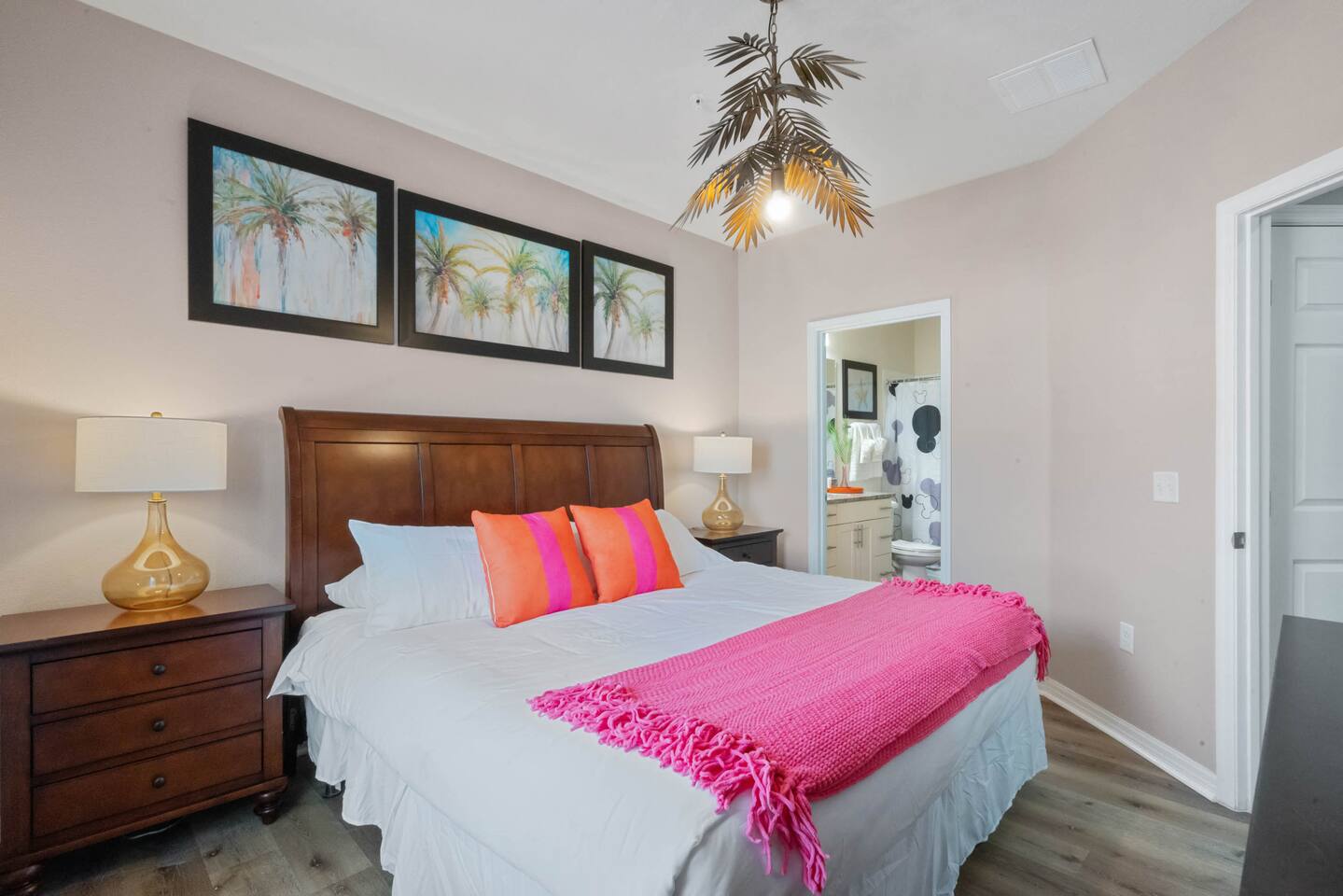 Guests will have access to the whole Villa and community pool! For those traveling with little ones, we offer Pack n’ Plays, a highchair, and a tension stair gate, at no additional cost. **All items must be requested 14 days prior to your arrival. We provide a small starter pack with basics like: ☀ 1 Paper Towel ☀ 1 Dish Detergent ☀ 1 Dish Sponge ☀ 2 Extra Trash Bags ☀ 2 Toilet Paper Roll Per Bath ☀ 2 to 3 Dishwashing Capsules in The Kitchen ☀ Small soap and small shampoo/conditioner per bathroom Please stop by the nearest Supermarket to gather any additional items you may need for the duration of your stay. The kitchen is well stocked with amenities we enjoy for large groups: ☀ Ample Serving Bowls ☀ Basic baking ware ☀ Keurig Coffee Maker ☀ Dishes & utensils for a crowd ☀ Pots & Pans to include a large Stock Pot ☀ Blender & Pitchers for serving Margaritas ☀ Microwave ☀ Oven ☀ Toaster ☀ Dishwasher HOUSEKEEPING: There is no daily housekeeping service provided at the rental rate. Before check-in, the unit will be thoroughly cleaned and inspected by a professional cleaning company. Clean sheets and towels will be available in the unit. Mid-stay cleaning services during your stay can be requested for an additional fee. FOOD: As per Florida law, we are not allowed to leave open food in the refrigerators or kitchen closets, hence, all food items will be removed after the guest checks out, and no supply of items such as condiments will be provided prior to check-in. Other things to note: Check-in is at 4:00 pm and check-out is at 10:00 am. We do offer either early check-in or late check-out, or both! However, please note this option is only available if we don't have same-day check-in as we require enough time between reservations to clean the home to our professional standards. Please send the requests well in advance so that we can coordinate in advance with our cleaning crew. Early Check-In: $50 add-on (3:00 pm instead) $75 add-on (2:00 pm instead) Late Check-Out: $100 add-on (11:00 am instead) $150 add-on (12:00 pm instead) In accordance with local regulations and the requirements of our insurance provider, guests may be asked to sign a rental agreement prior to check-in. This agreement is intended to ensure transparency and provide protection for both parties. We do not accept bookings from guests rated below 4 stars. Guests with ratings between 4 and 4.5 stars will require approval from management. Please remember that you're staying in someone's home, not a hotel. Please treat the space with respect. If any problems arise, we will do our best to act immediately; however, please keep in mind there is no one living on site 24/7. If you have an issue with the home, please let us know so we can fix it immediately!
