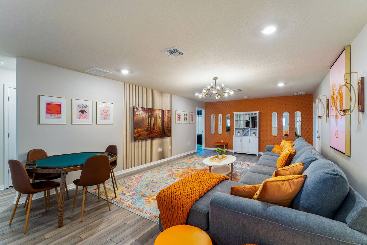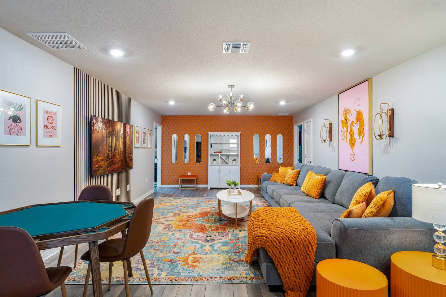 Welcome to our Windsor Island Resort haven, near Disney! This beautifully designed home sleeps 17 and boasts a private heated pool and spa for ultimate relaxation. With incredible design, featuring a unique GOT throne, your stay will be nothing short of regal. Enjoy our game room for indoor fun, and explore the community's vibrant arcade and expansive water park. Ideal for large families or groups, this home offers a blend of luxury and entertainment, ensuring a memorable vacation experience!