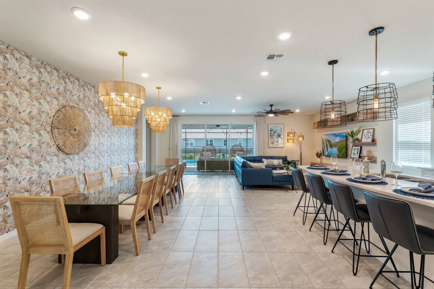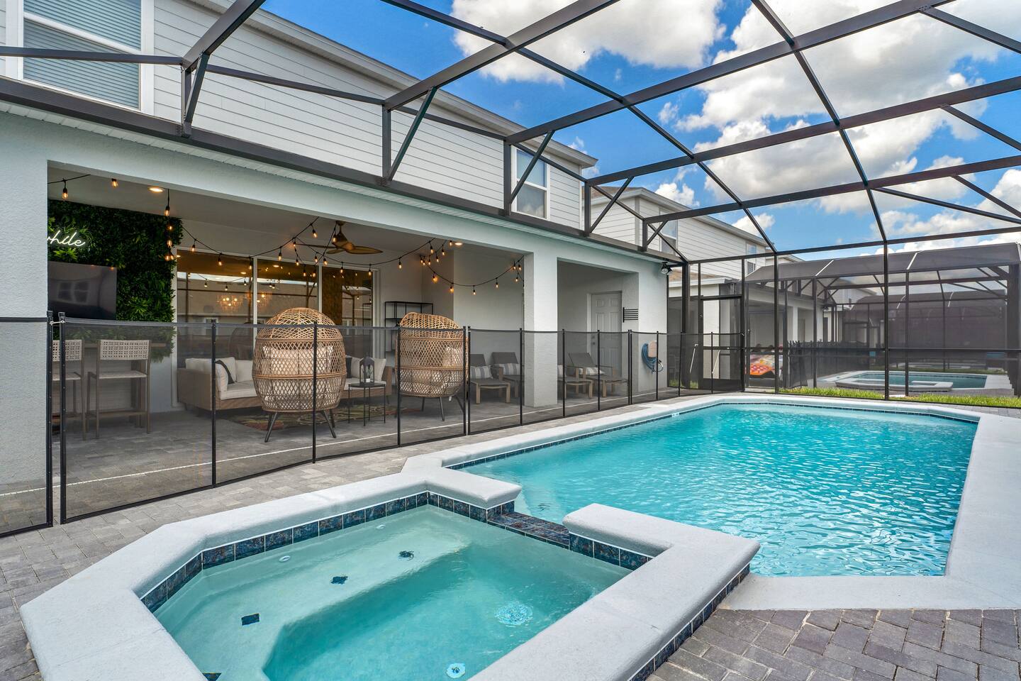 Guests will have full access to the whole house. Free parking is available onsite for two vehicles in the driveway. No trailers are allowed on the premises. For those traveling with little ones, we offer Pack n’ Plays, a highchair, and a tension stair gate, at no additional cost. ***All items must be requested 14 days prior to your arrival. Just so you know, a baseline set of Pool Heat - set to 80 degrees in the summer (May-Sep), and 83 degrees in the winter (Sep-Apr) is included in your reservation. The Heat Pump Runs from (8 AM – 7 PM). During the winter, to constantly maintain a more moderate pool temperature, it requires a higher temperature (typically 88 degrees) and the pump is usually required to run 24 HRS a day during your stay. If this sounds like a better option for you, we can provide this service at an additional cost of $35 / Day. Please let our team know at least 48 HRS in advance, as it can take that amount of time to heat the pool with cooler outdoor temperatures. We provide a small starter pack with basics like: ☀ 1 Paper Towel ☀ 1 Dish Sponge ☀ 1 Dish Detergent ☀ 2 Extra Trash Bags ☀ 2 Toilet Paper Roll Per Bath ☀ 2 to 3 Dishwashing Capsules in The Kitchen ☀ Small soap and small shampoo/conditioner per bathroom Please stop by the nearest Supermarket to gather any additional items you may need for the duration of your stay. The kitchen is well stocked with amenities we enjoy for large groups: ☀ Ample Serving Bowls ☀ Basic baking ware ☀ Keurig Coffee Maker ☀ Dishes & utensils for a crowd ☀ Pots & Pans to include a large Stock Pot ☀ Blender & Pitchers for serving Margaritas ☀ Microwave ☀ Oven ☀ Toaster ☀ Dishwasher HOUSEKEEPING: There is no daily housekeeping service provided at the rental rate. Before check-in, the unit will be thoroughly cleaned and inspected by a professional cleaning company. Clean sheets and towels will be available in the unit. Mid-stay cleaning services during your stay can be requested for an additional fee. GRILL 🔥: Enjoy the grill during your stay! Most homes in the area charge extra, but we include it for you! Guests are kindly asked to provide their own propane for the grill. Occasionally, previous guests may leave some behind, so you may be able to use it, but as a general rule, guests should plan to bring or swap propane at a local exchange station. FOOD: As per Florida law, we are not allowed to leave open food in the refrigerators or kitchen closets, hence, all food items will be removed after the guest checks out, and no supply of items such as condiments will be provided prior to check-in. Other things to note: Check-in is at 4:00 pm and check-out is at 10:00 am. We do offer either early check-in or late check-out, or both! However, please note this option is only available if we don't have same-day check-in as we require enough time between reservations to clean the home to our professional standards. Please send the requests well in advance so that we can coordinate in advance with our cleaning crew. Early Check-In: $50 add-on (3:00 pm instead) $75 add-on (2:00 pm instead) Late Check-Out: $100 add-on (11:00 am instead) $150 add-on (12:00 pm instead) In accordance with local regulations and the requirements of our insurance provider, guests may be asked to sign a rental agreement prior to check-in. This agreement is intended to ensure transparency and provide protection for both parties. We do not accept bookings from guests rated below 4 stars. Guests with ratings between 4 and 4.5 stars will require approval from management. Please remember that you're staying in someone's home, not a hotel. Please treat the space with respect. If any problems arise, we will do our best to act immediately; however, please keep in mind there is no one living on site 24/7. If you have an issue with the home, please let us know so we can fix it immediately!