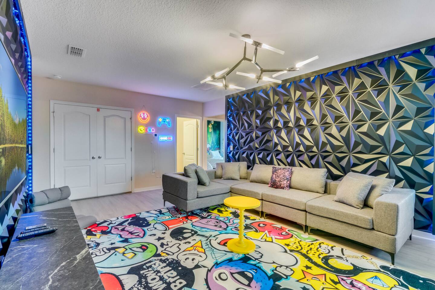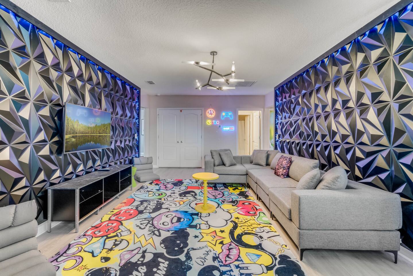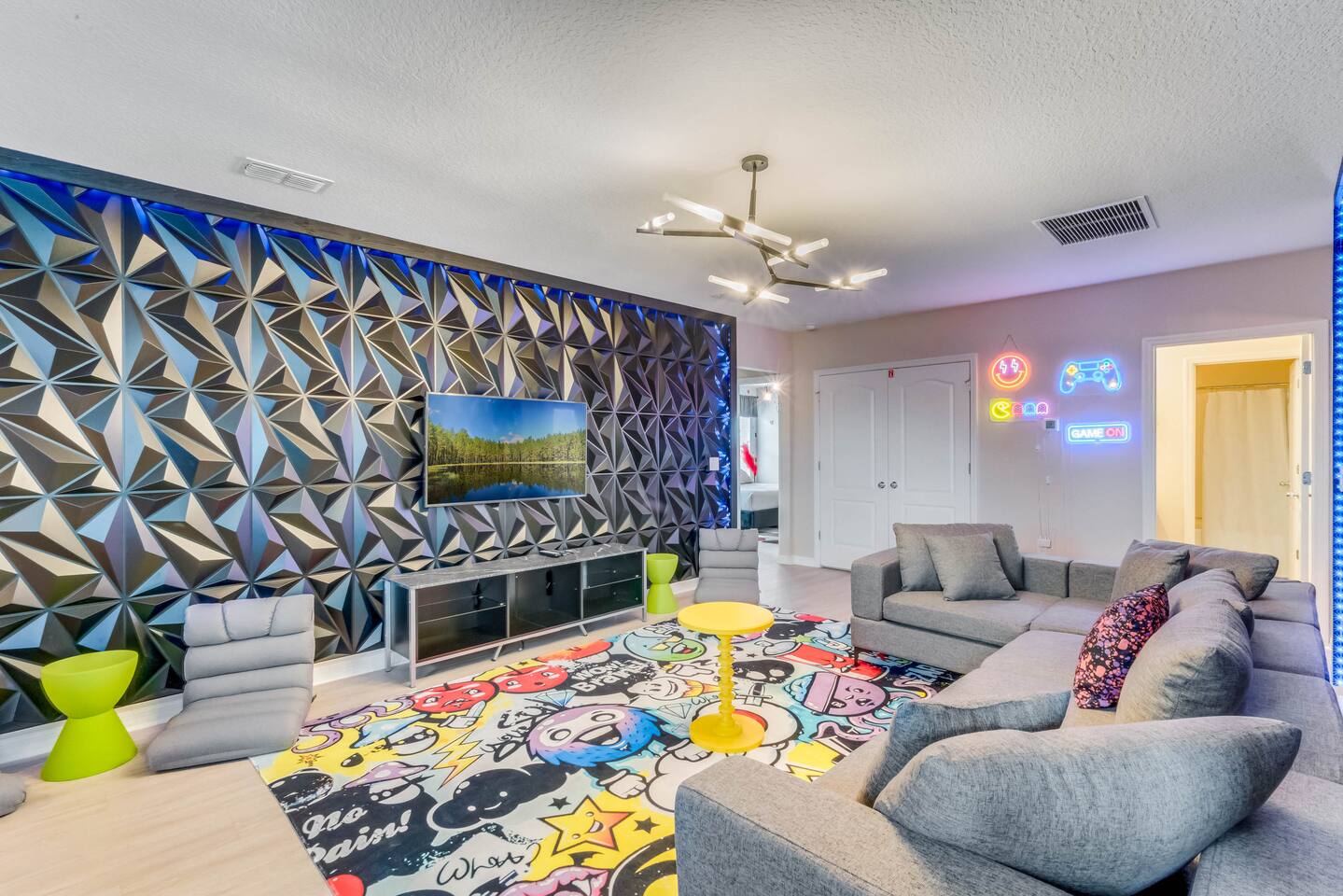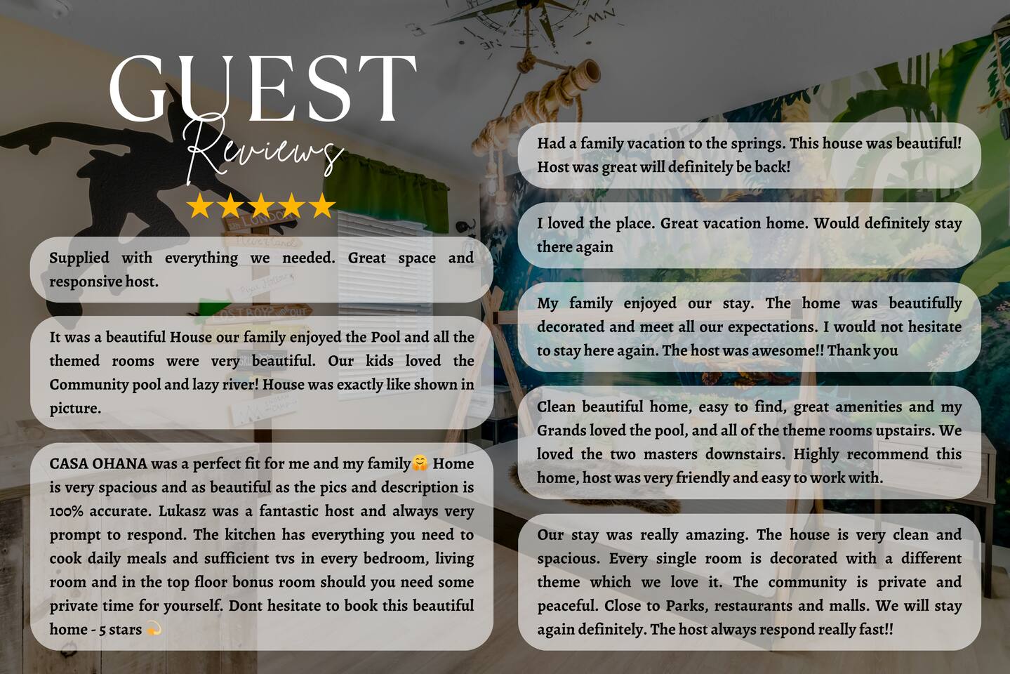 Welcome to “Casa Ohana” our newly redesigned and the ultimate Disney getaway for large families. With luxurious common areas and themed bedrooms, the kids will feel like they have entered a Disney movie. We offer a private pool, a hot tub, and an extraordinary community water park. This is the ideal large-group holiday destination with a FREE HEATED POOL AND SPA. • 8.8 Miles to Disney World • 10 Miles to Old Town • 20 Miles to Universal Studios Experience a new standard in hospitality!