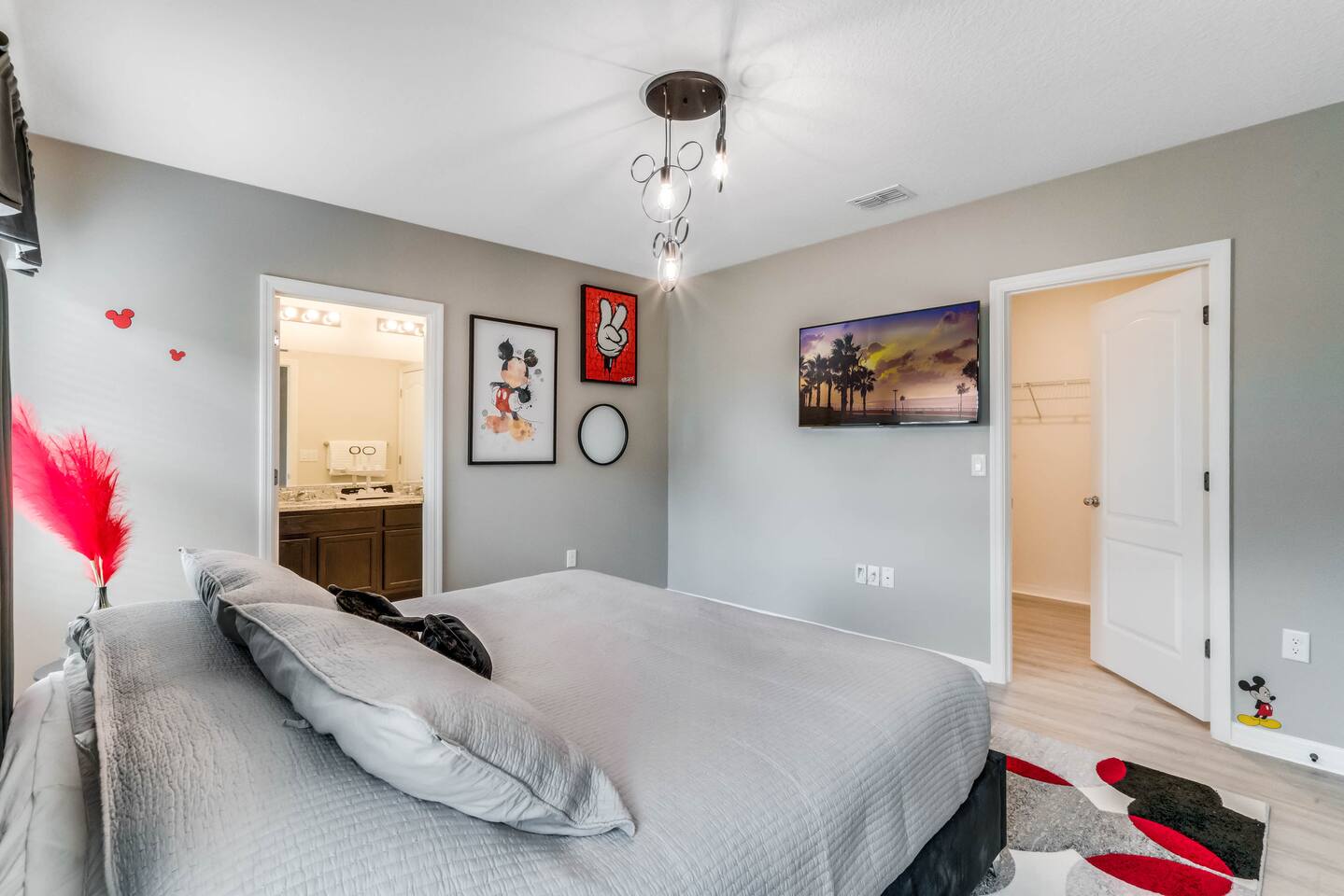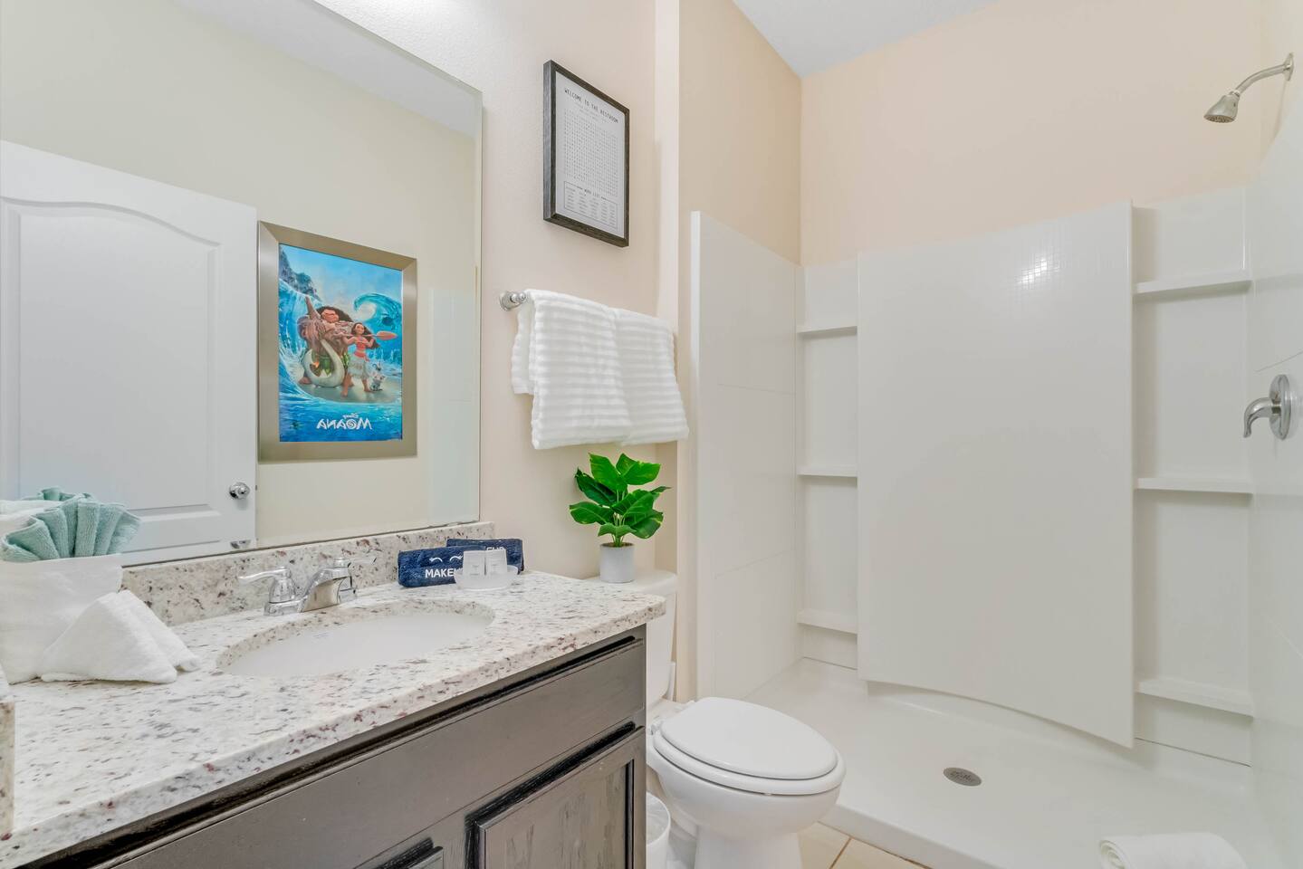 Getting around is a breeze in our conveniently located Villa. Enjoy a leisurely stroll around the scenic community, or walk to nearby attractions including a playground, clubhouse, and water park. Disney is just a 15-20 minute drive away, ensuring your magical adventure is always close at hand. Additionally, you'll find a variety of restaurants and shopping options nearby, making every aspect of your stay both convenient and enjoyable
